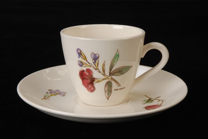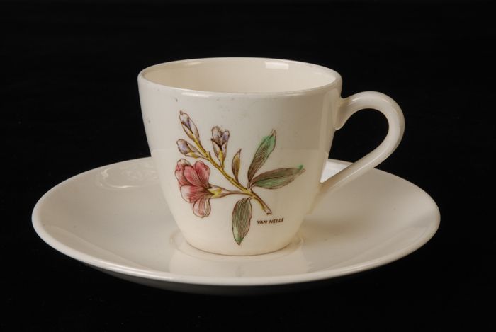 Kop met schotel van Van Nelle, mokkaservies 'Bouquet'