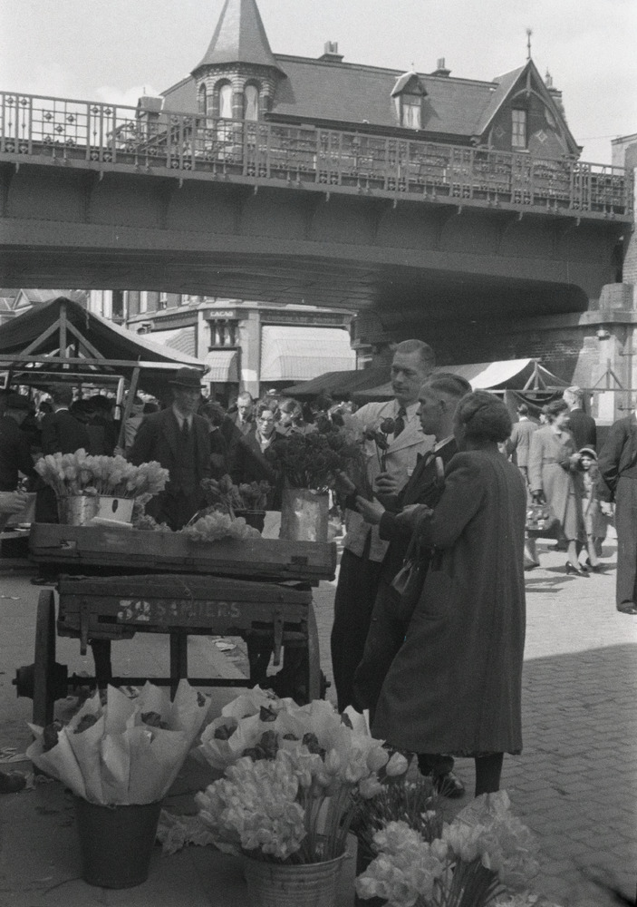 Bloemenkraam op een markt op de Hommelstraat in Arnh...