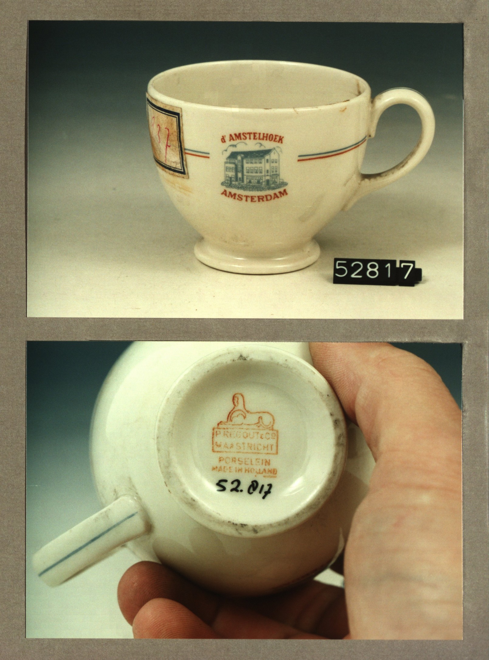 Kop met opschrift, model Modern met decor d' Amstelh...