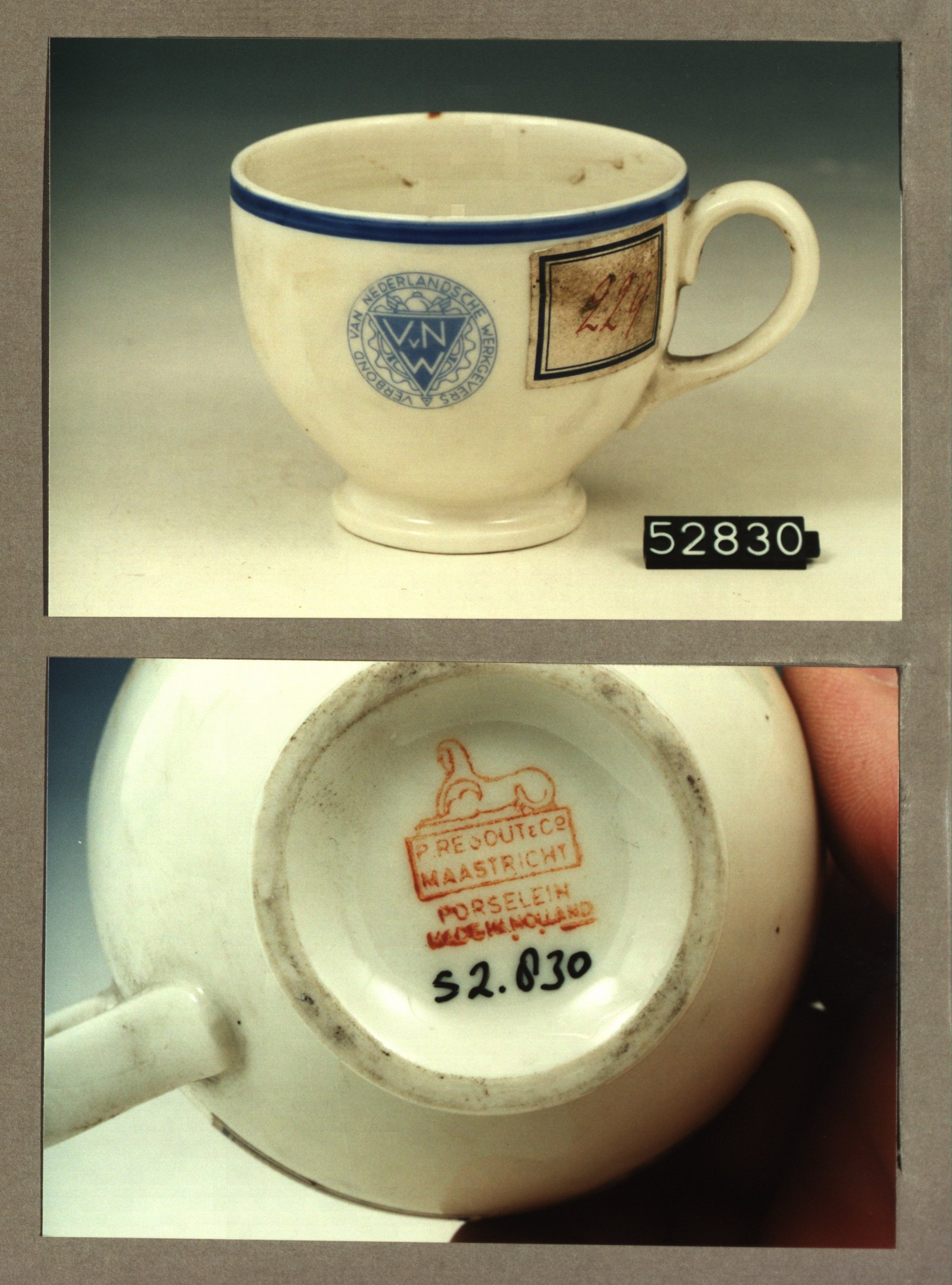 Kop met opschrift, model H met decor Rotterdamse Llo...
