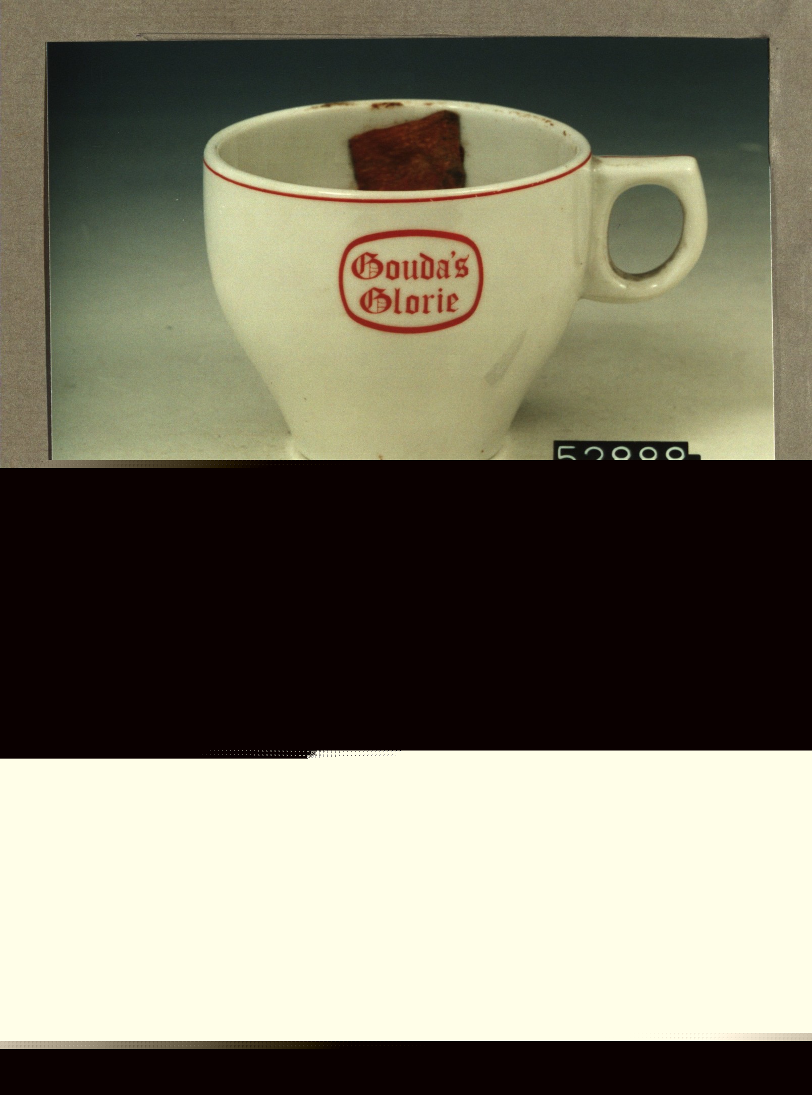 Kop met opschrift, model SPH met decor Gouda's glorie