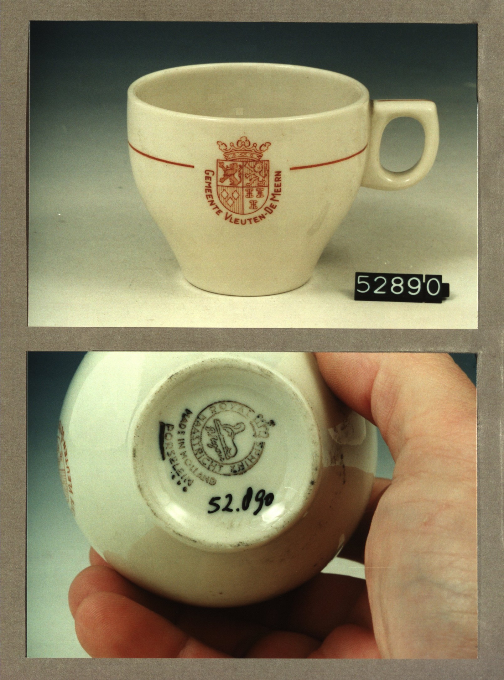 Kop met opschrift, model Marijke met decor KW