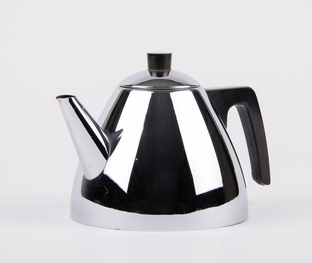 Theepot van verchroomd metaal, vervaardigd door Meta...