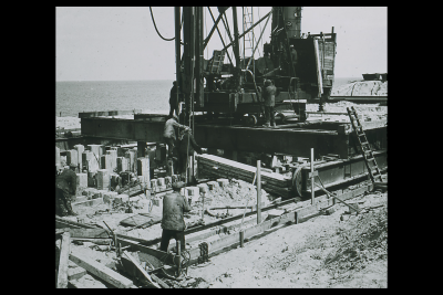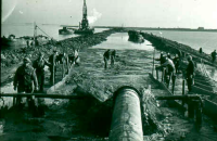 Bouw van kazematten in de Afsluitdijk, Kornwerderzan...