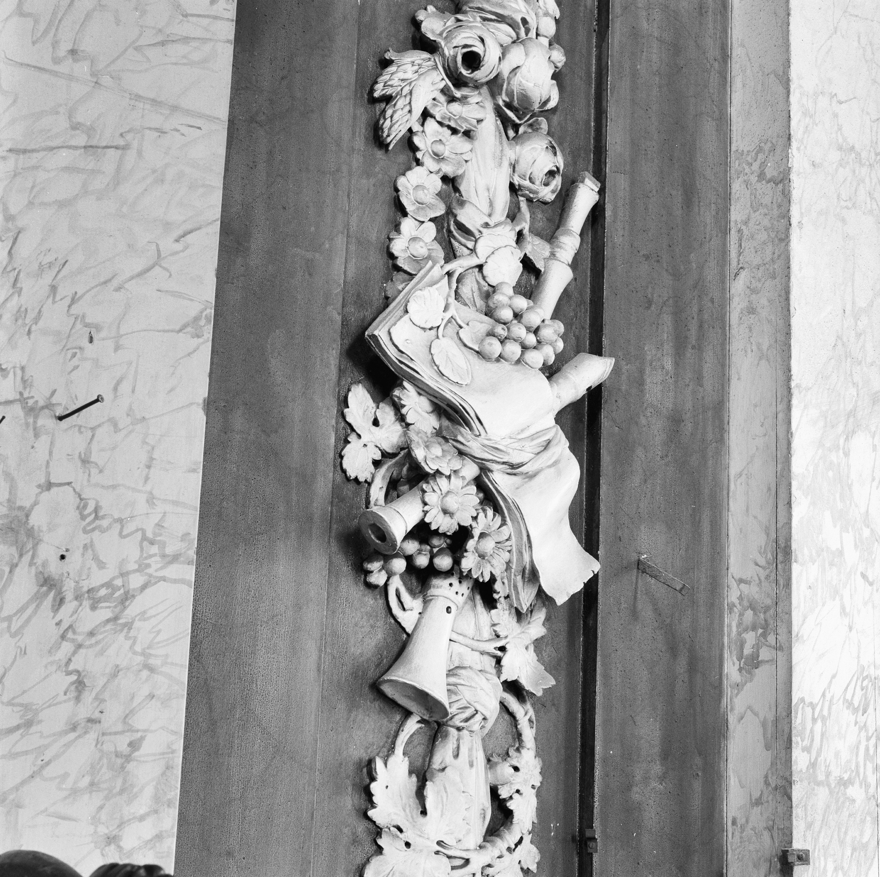 Interieur, snijwerk/beeldhouwwerk orgel, detail