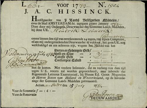 Kwitantie, ambtgeld, 1792