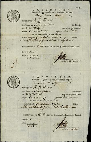 Kwitantie met zegel, 1811