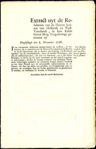 Extract uit de resolutien van de Heeren Staaten van ...