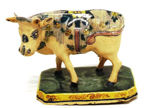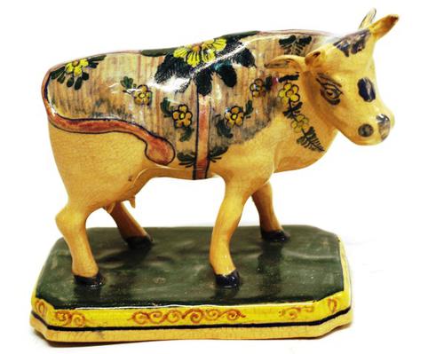 Beeld van keramiek van een koe gebruikt als sierobject