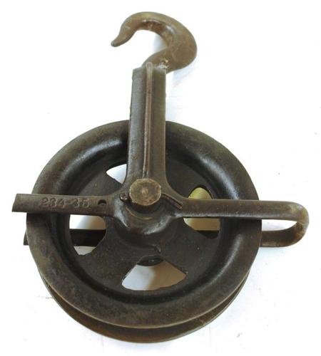 Katrol van metaal gebruikt als onderdeel van een hij...