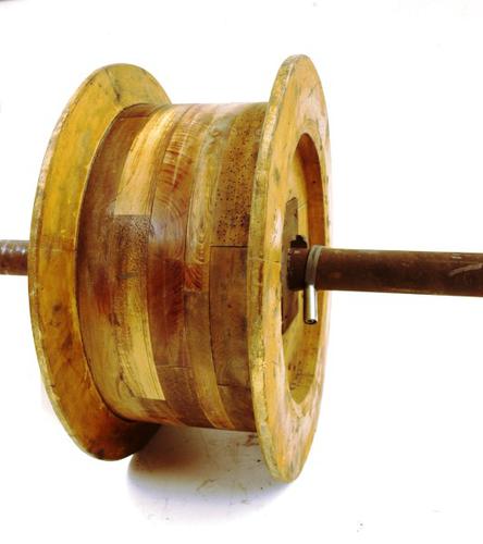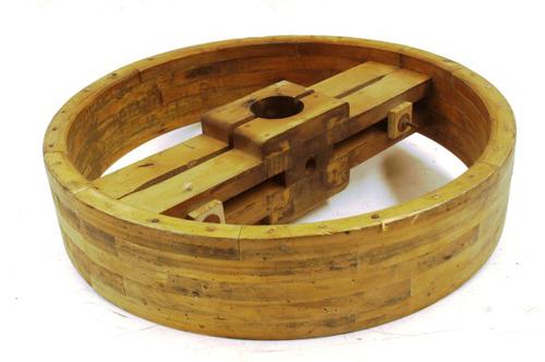 Poelie van hout gebruikt als onderdeel van een aandr...