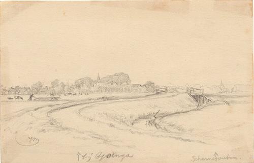 Tekening van De Eibertsbek te Drachten