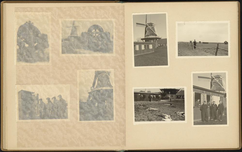 Barakken bij een molen voor de bemanning van een lui...