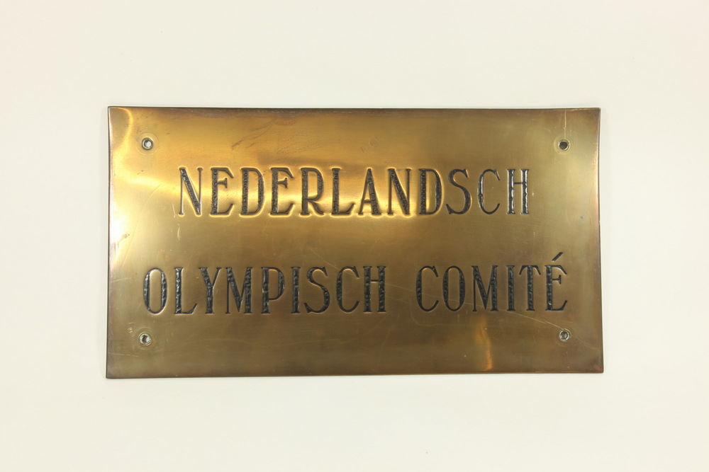 Koperen naamplaat van het NOC met 'Nederlandsch Olym...