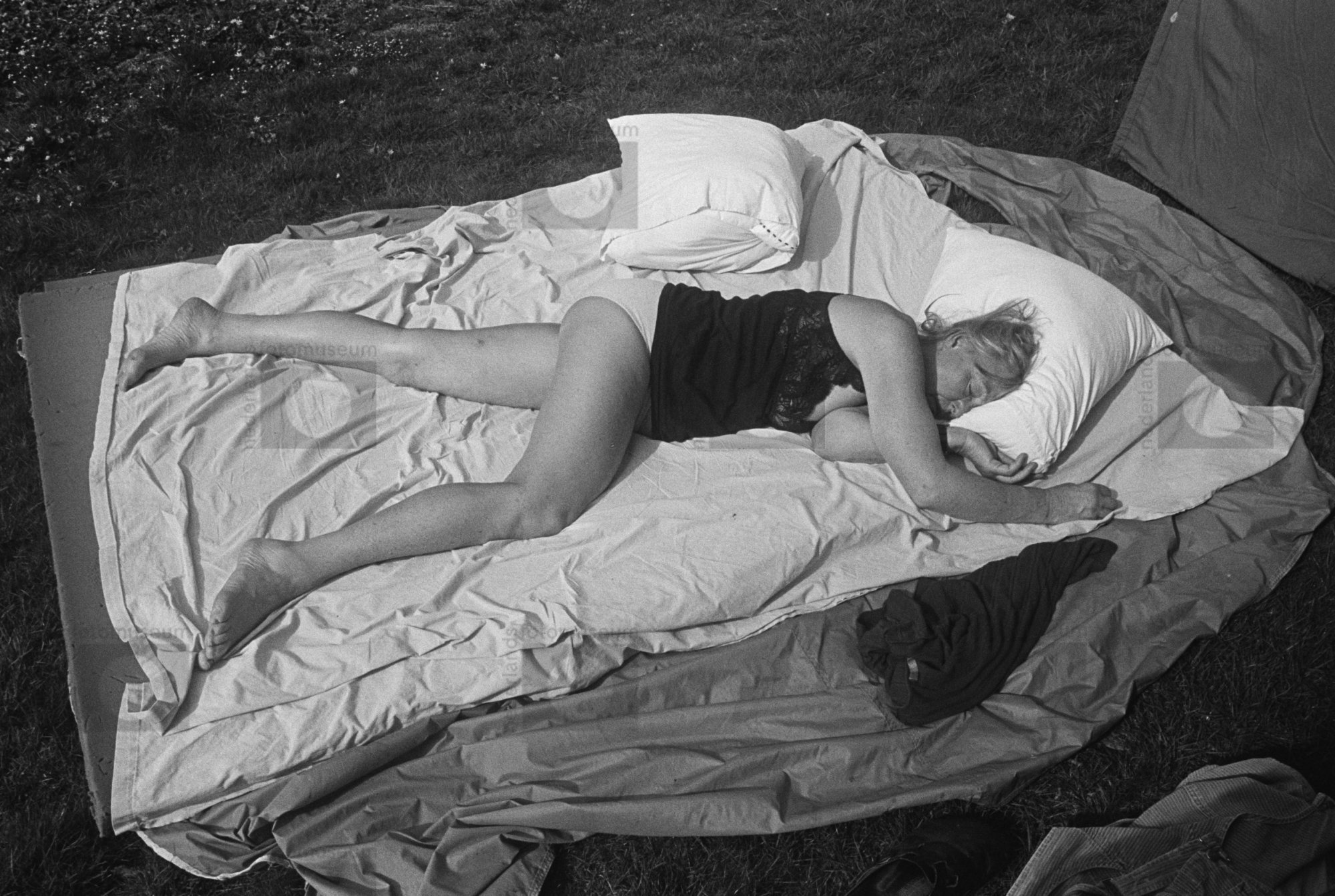 Friesland, Nij Beets. Voorjaar. Ine buiten slapen ac...