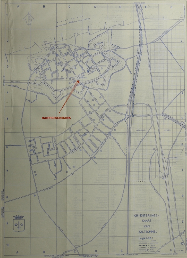plattegrond van Zaltbommel. Met toegangswegen en nam...