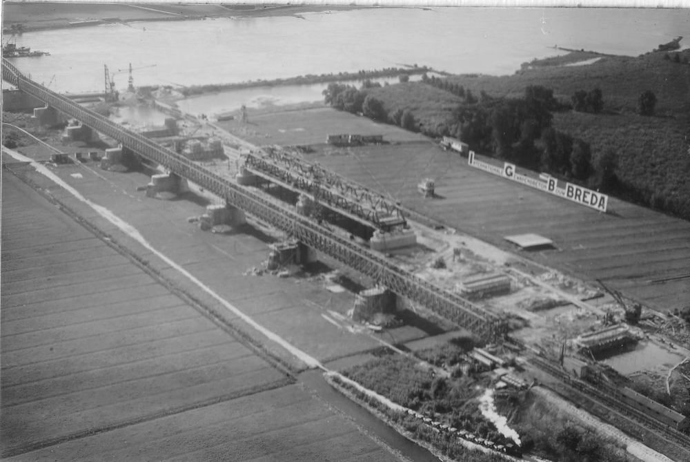 Bouw tuibrug bij Zaltbommel 1993
