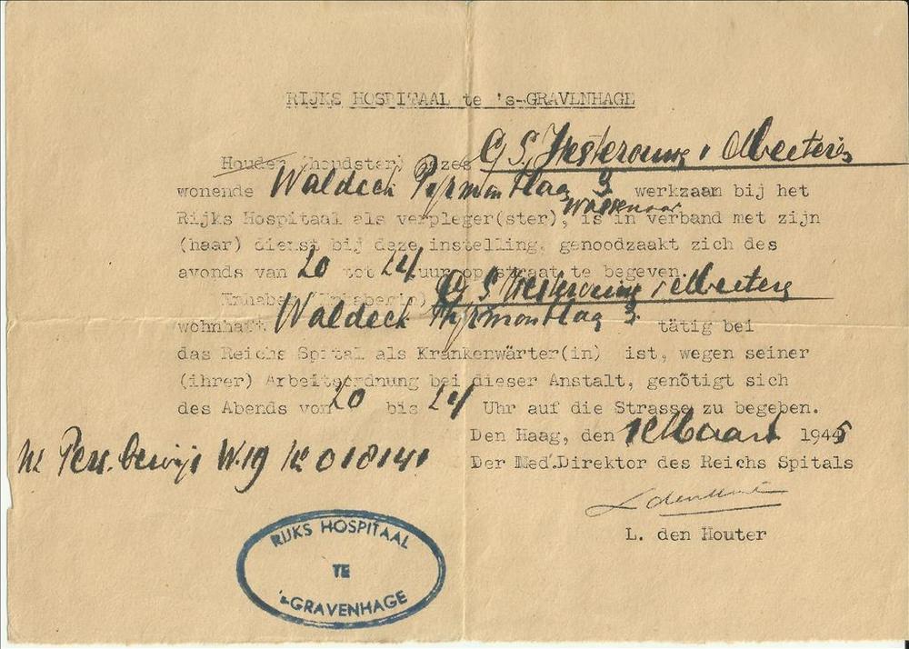 Rijks Hospitaal te 's-Gravenhage maart 1945. Verklar...