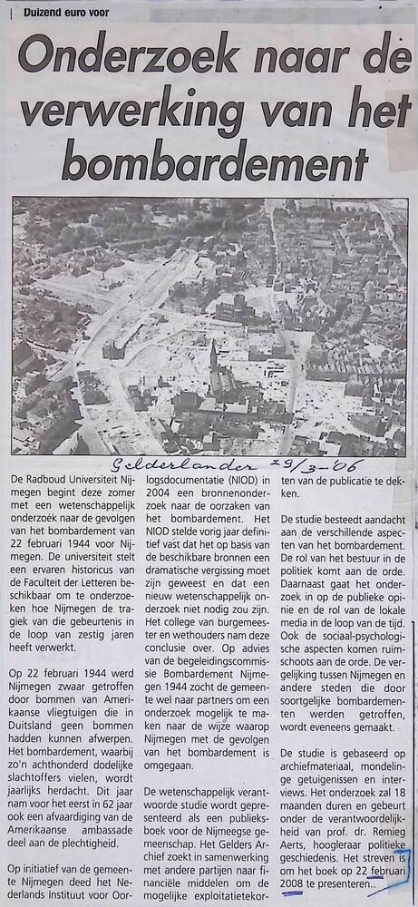 Vel met tekst : "Het vreedzame bombardement van Rott...