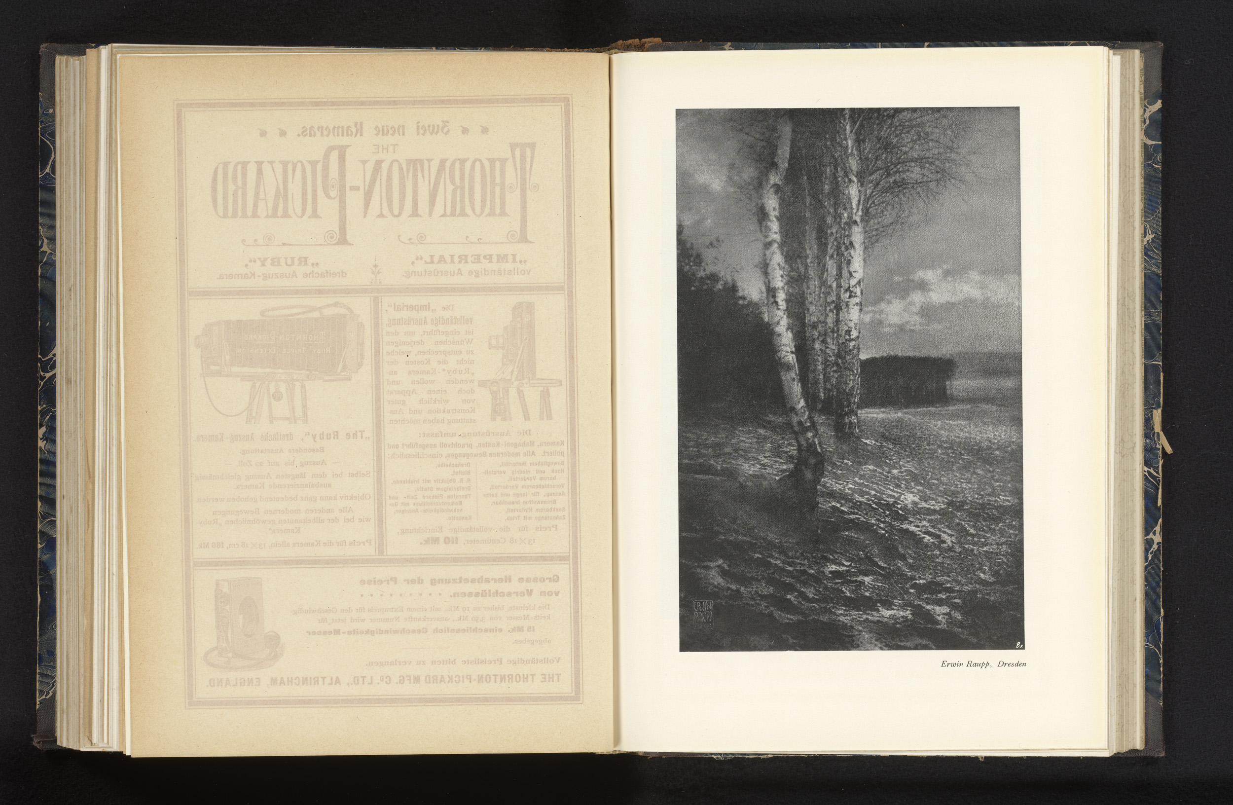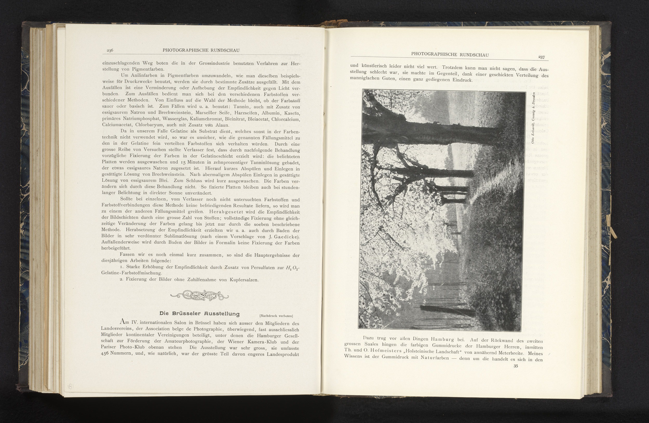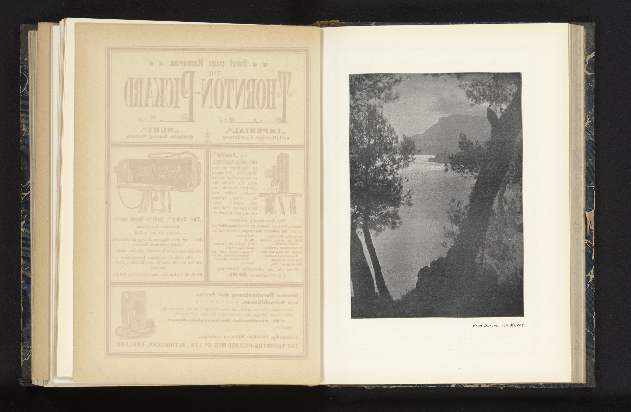 Drie afbeeldingen, één van bomen aan een water en tw...