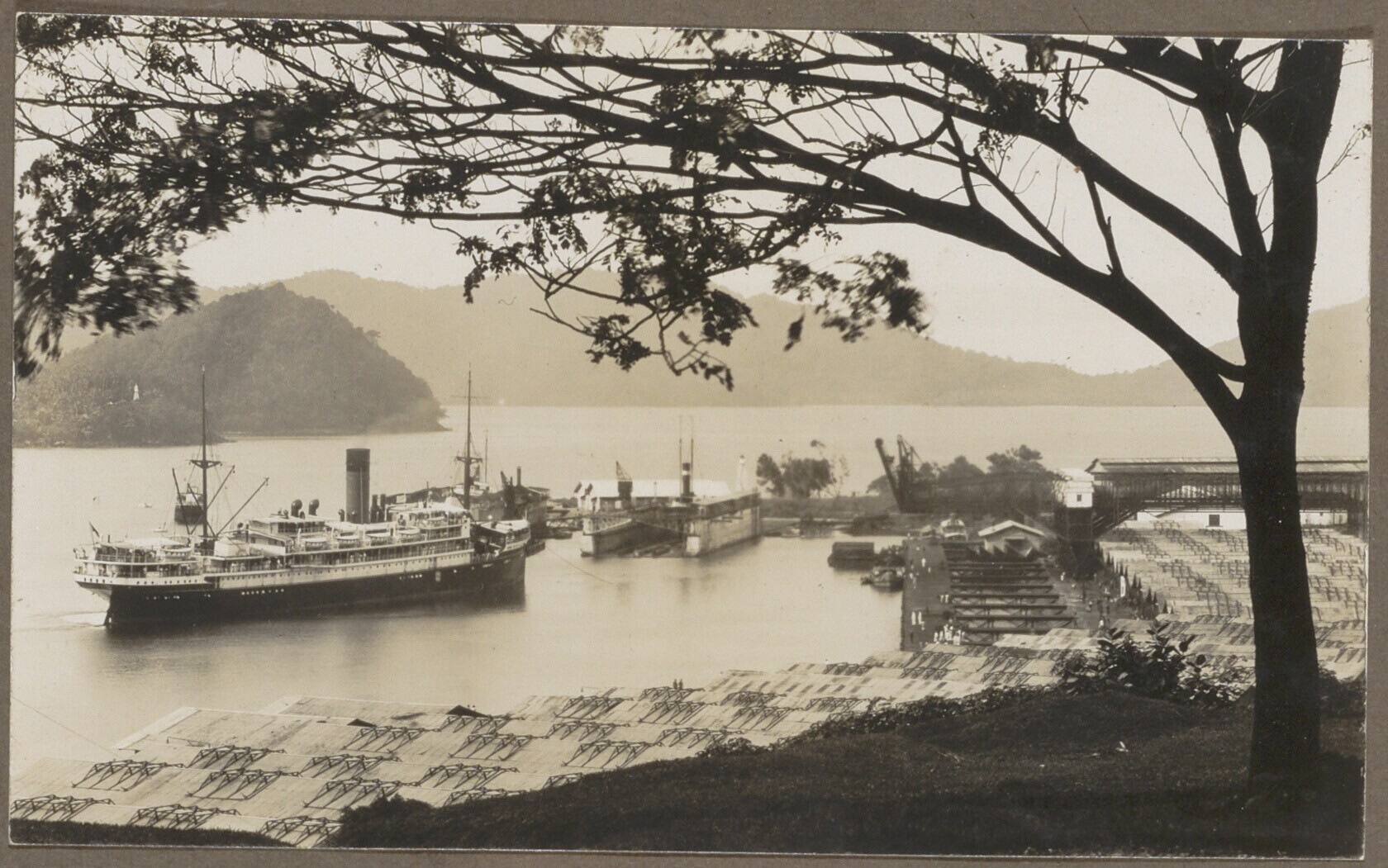 S.S. Koningin der Nederlanden' van de SMN voor anker...