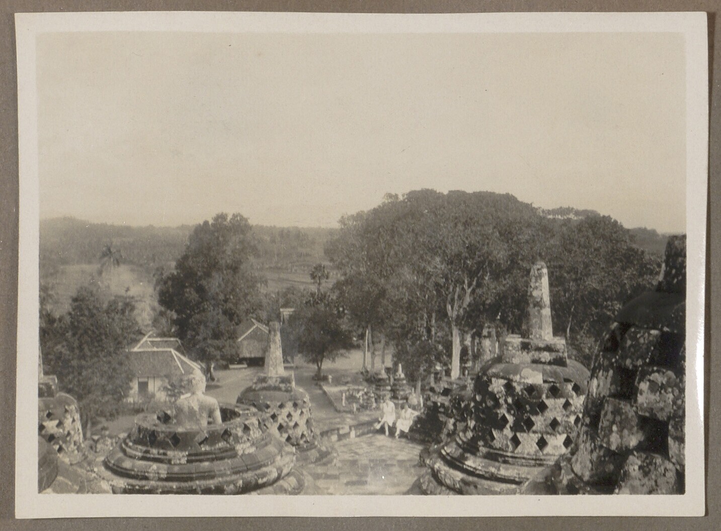 Gezicht op kleine stoepa's Borobodur met twee europe...