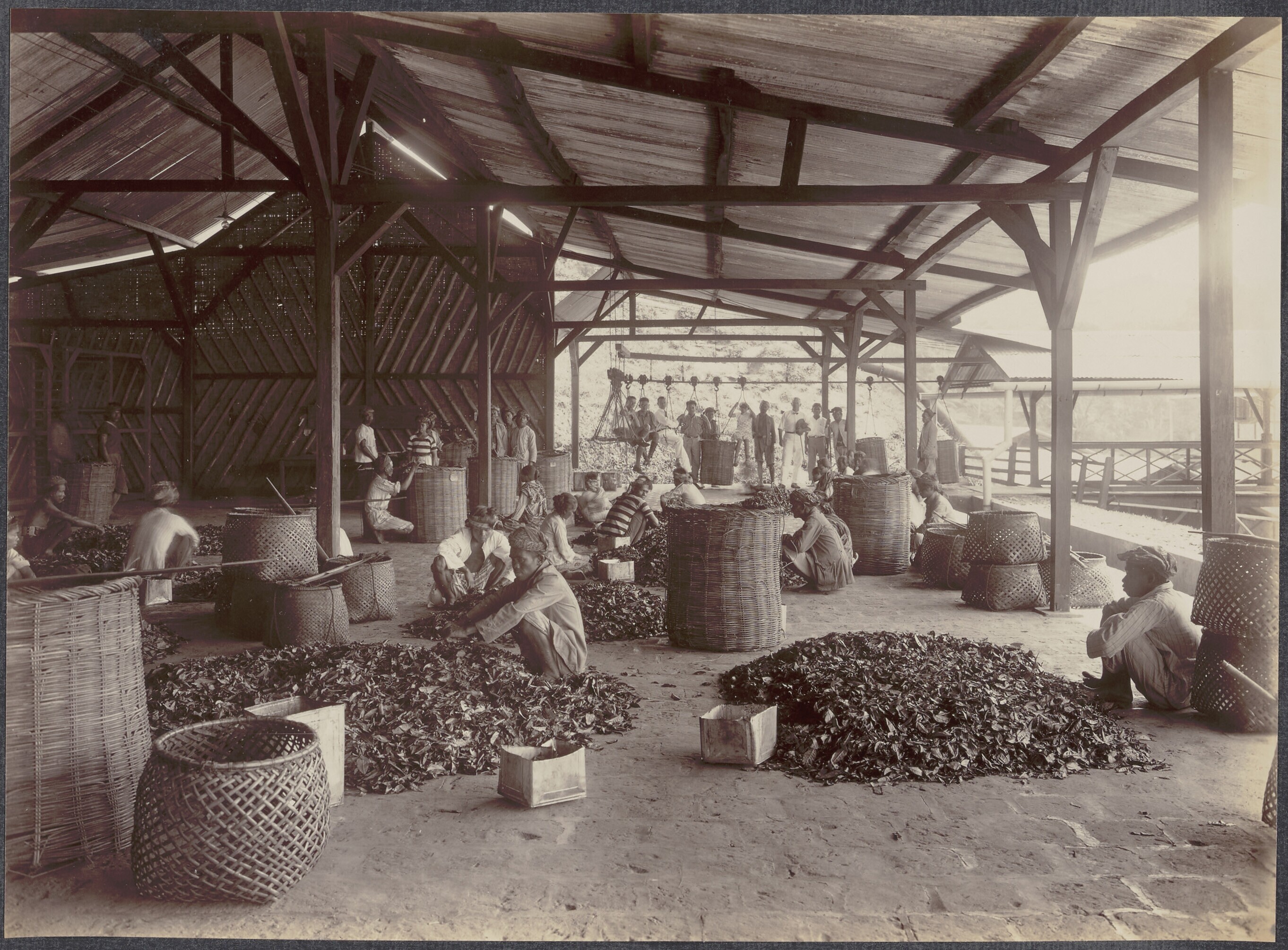 Europese opzichters en Javaanse arbeiders in het kan...