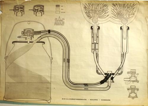 Tekening op papier van een ALFA-LAVAL melkmachine ge...