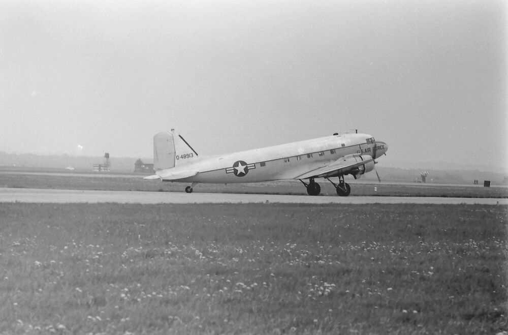 Douglas DC-3/C-47 'Dakota' USAFE O-48913 op de rolbaan.