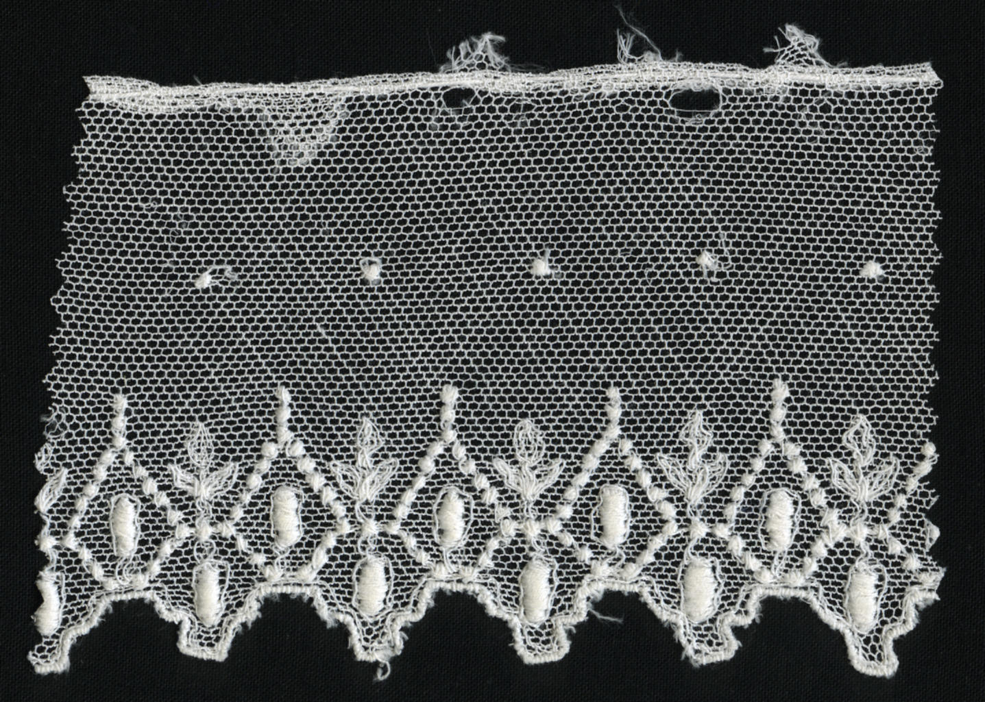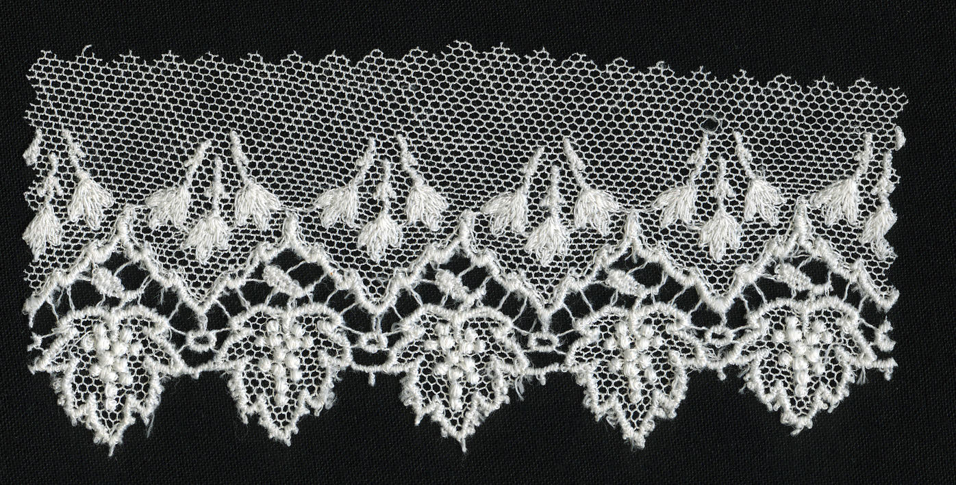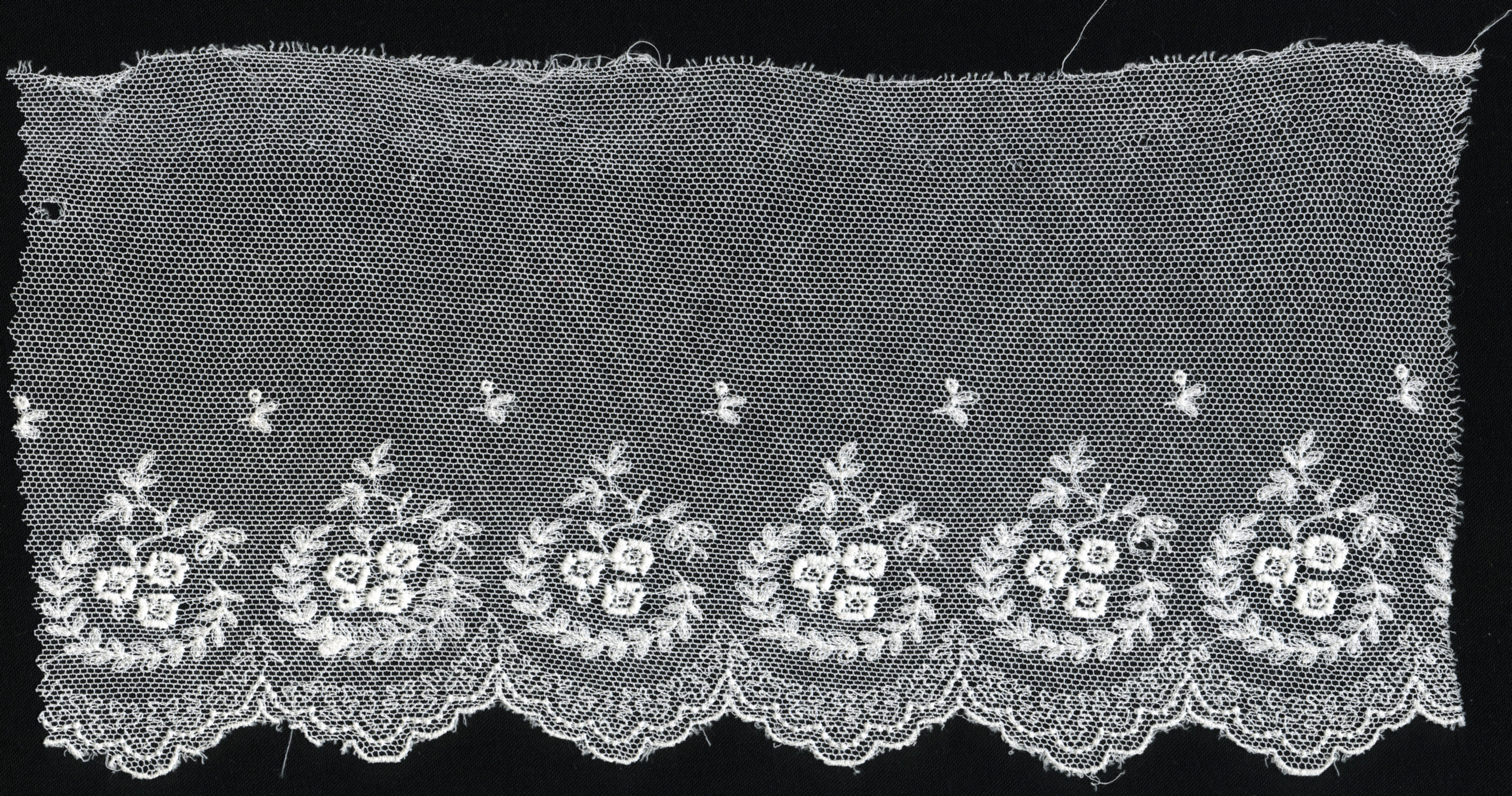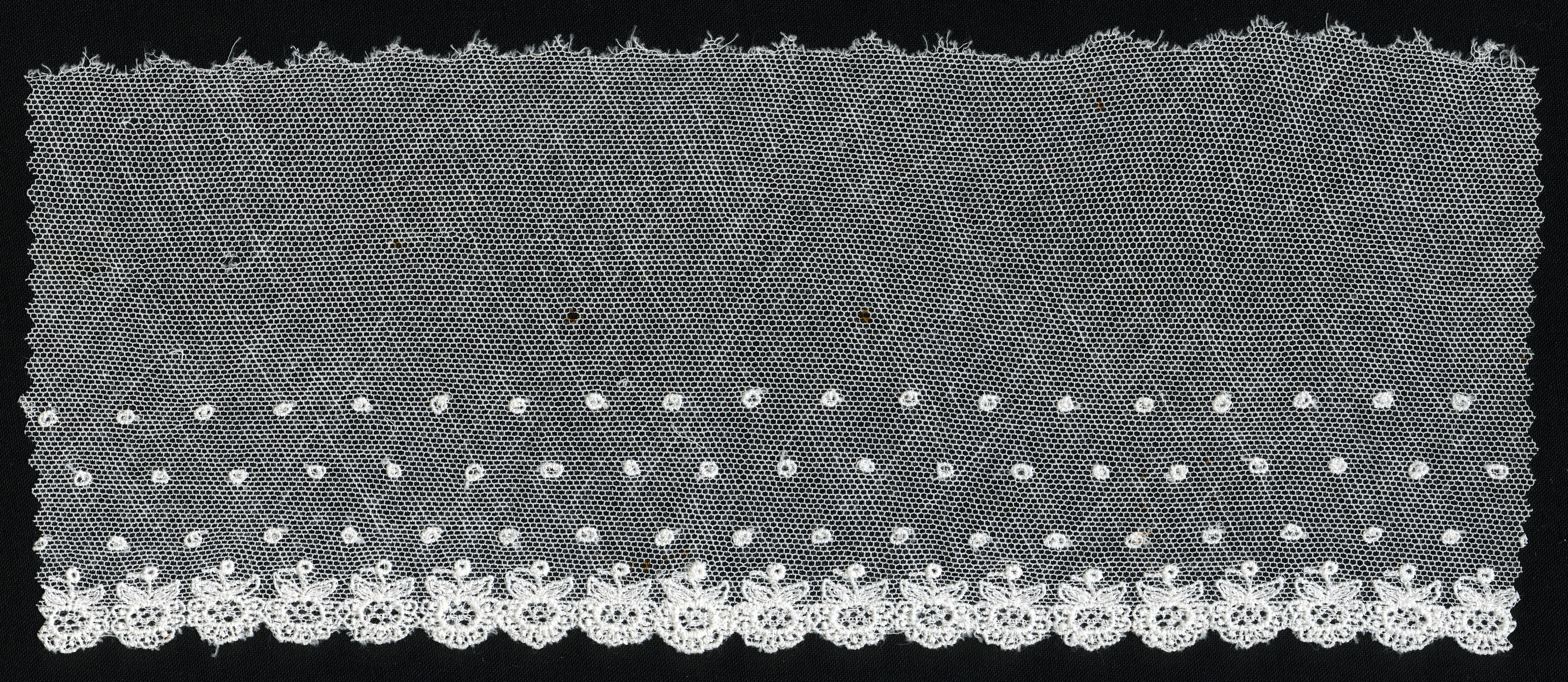 Fragment machinaal versierde tule (staal (monster))