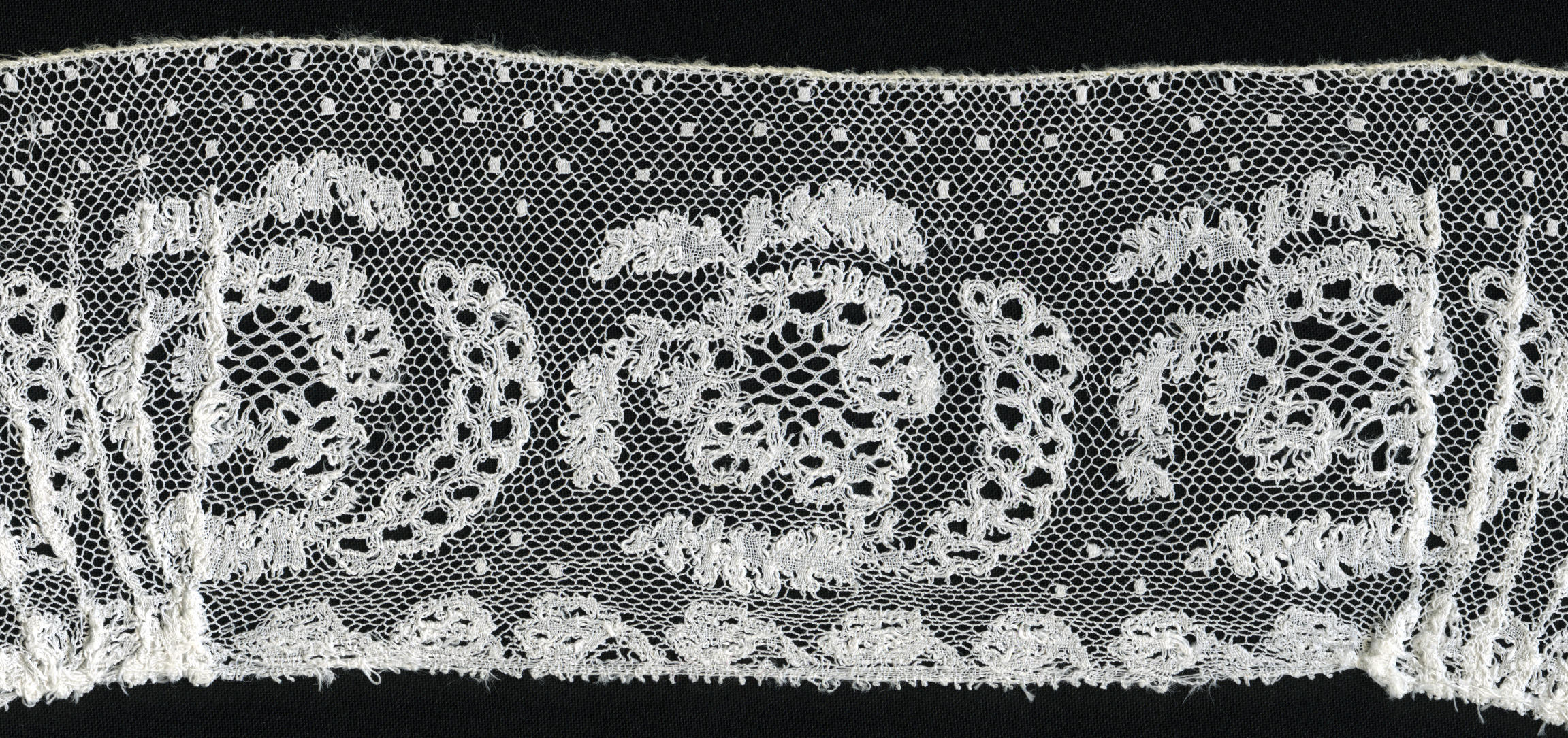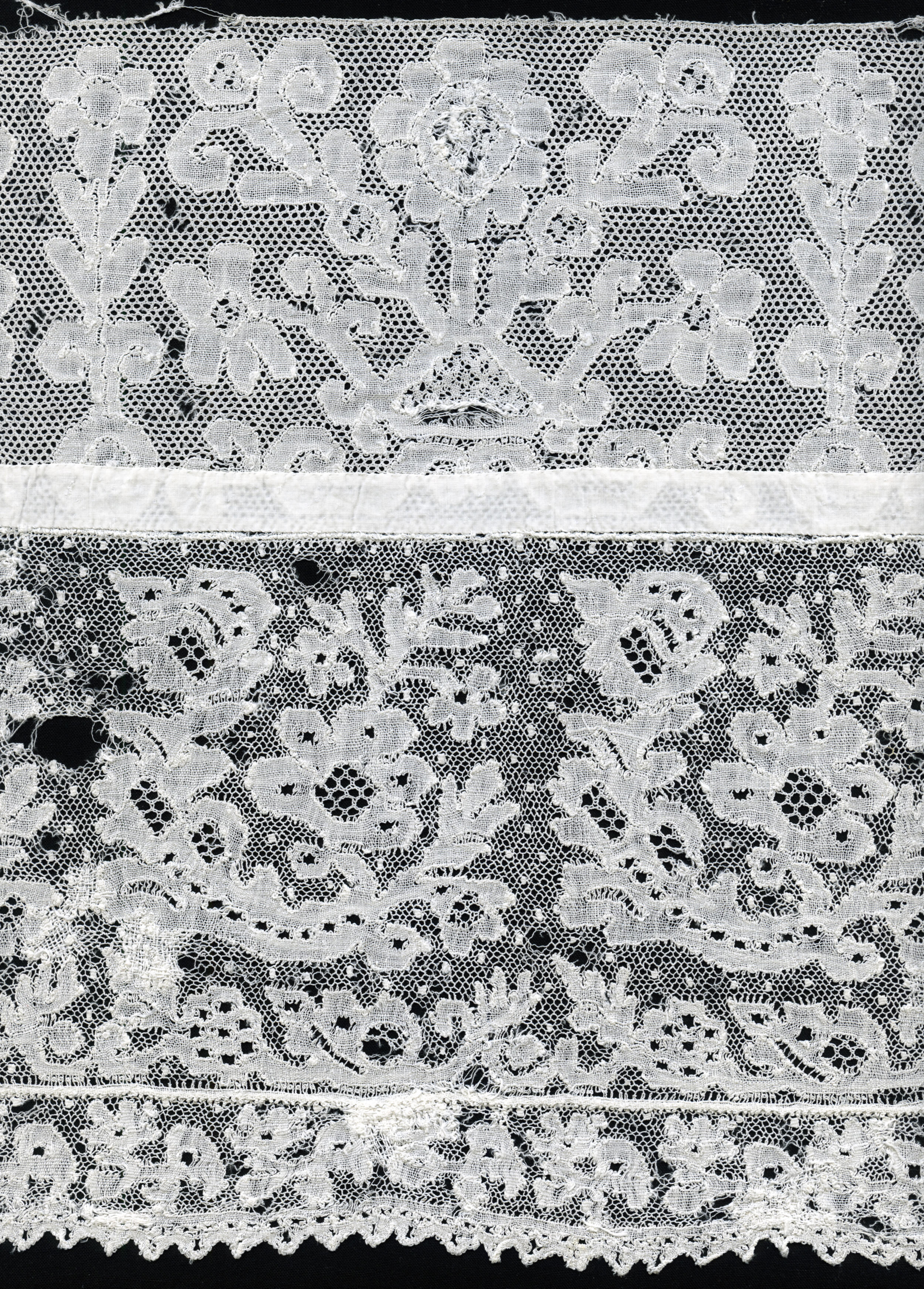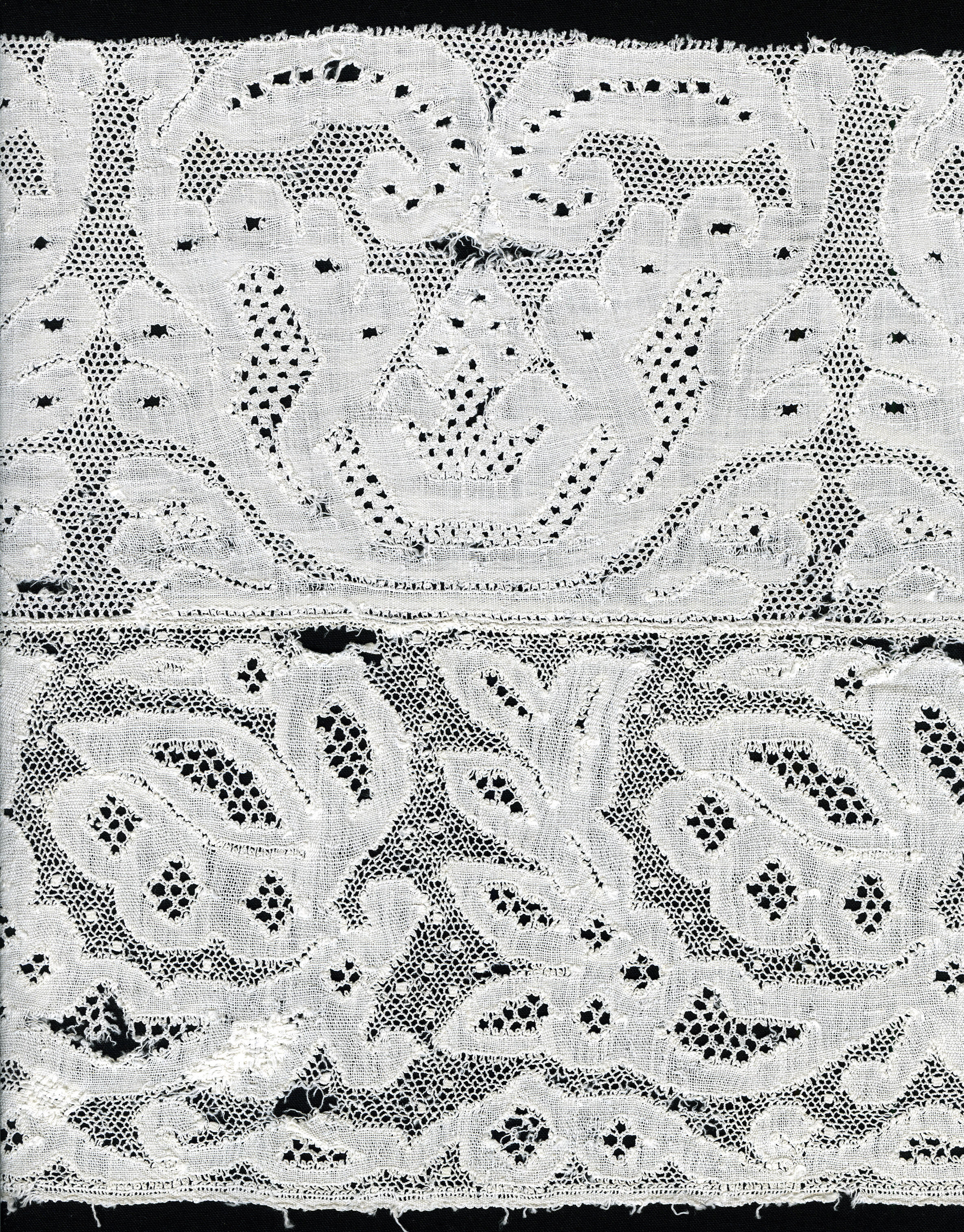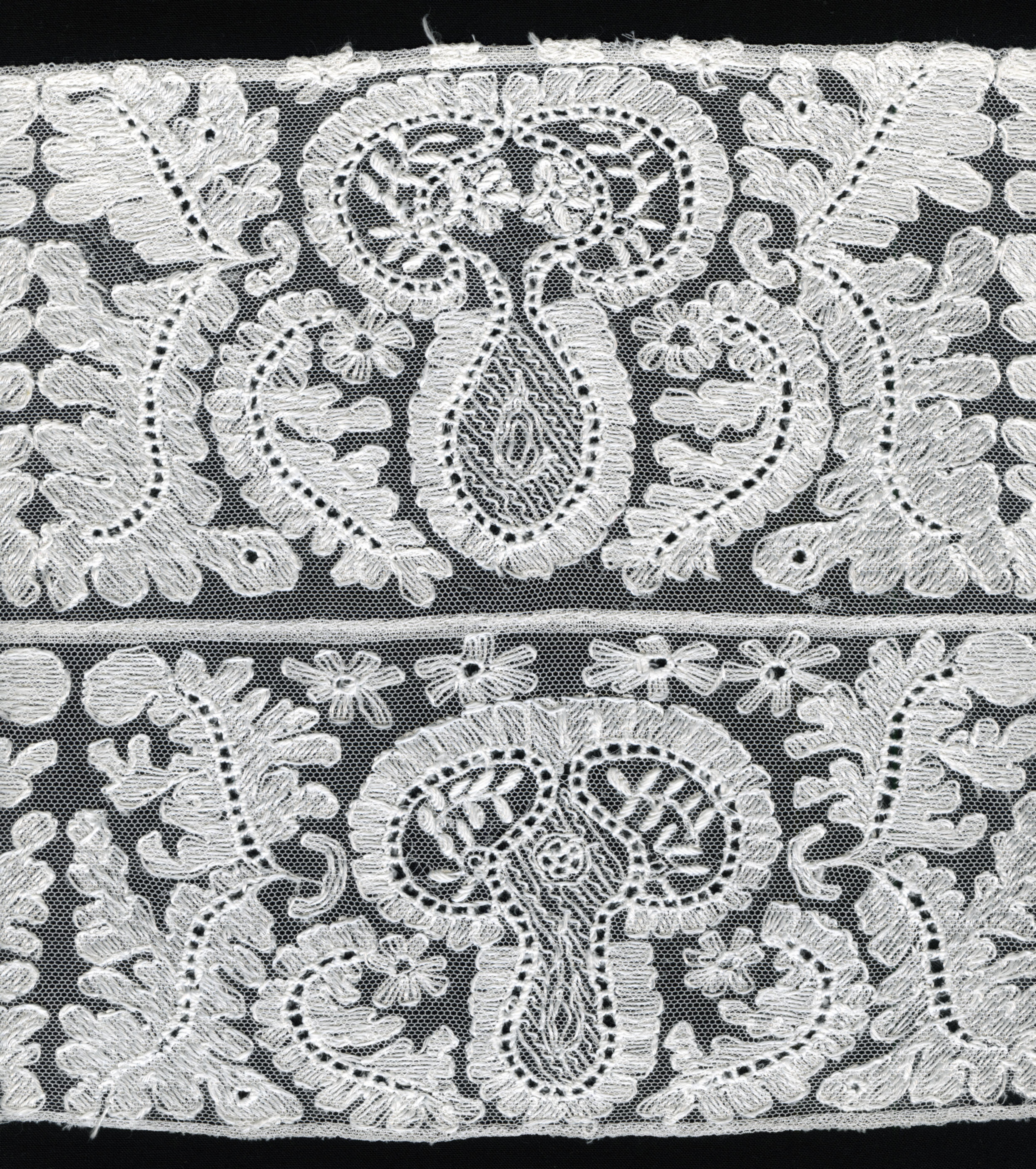 Fragment machinaal versierde tule (staal (monster))