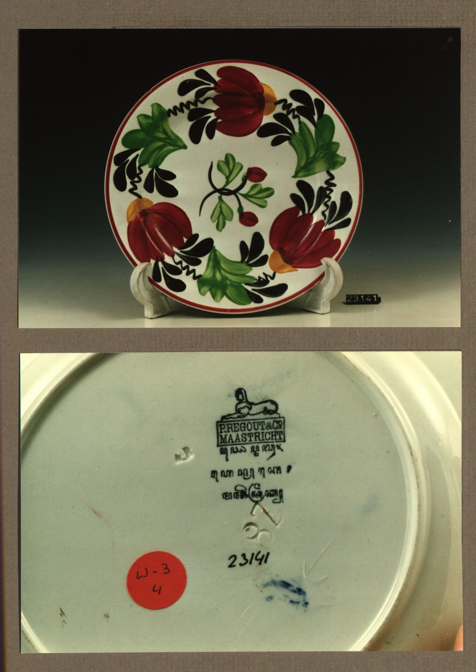 Plat bord met decor 24 rood