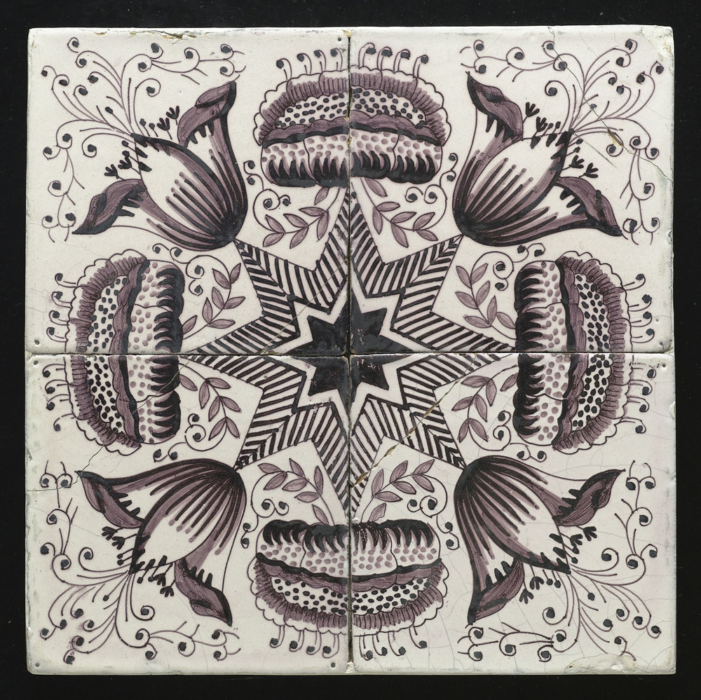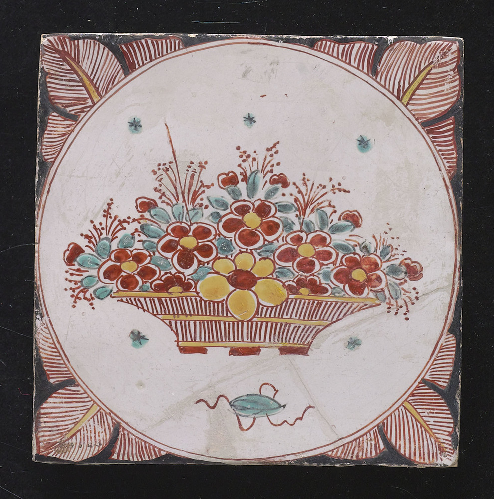 Tegel van aardewerk met tinglazuur, in kleinvuur, vo...