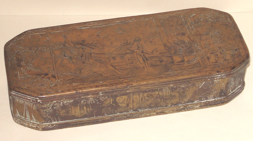 tabaksdoos van geelkoper, model rechthoekig, versier...
