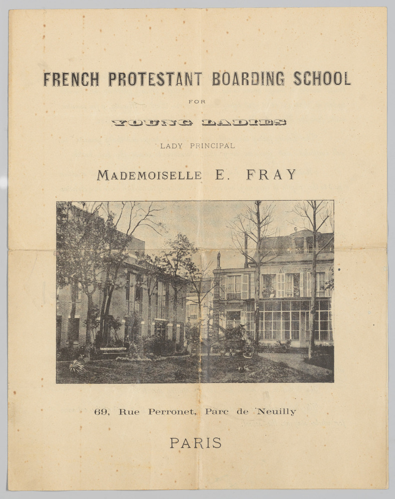 Pamflet voor een Franse kostschool voor jonge dames ...