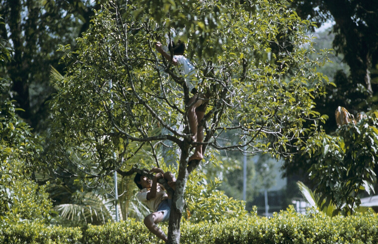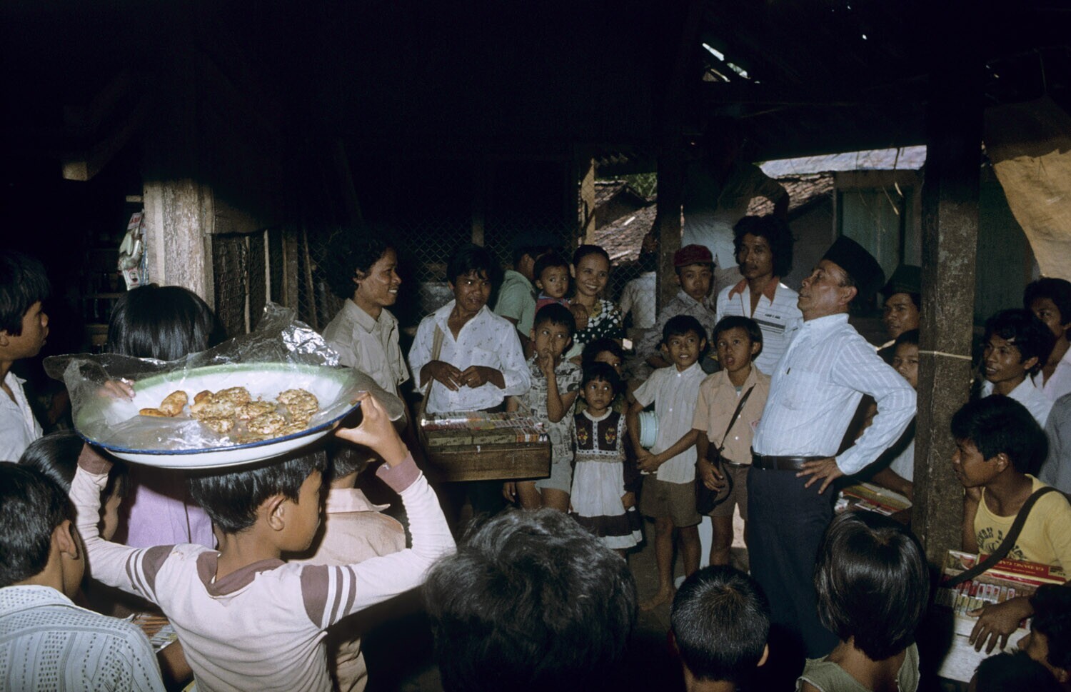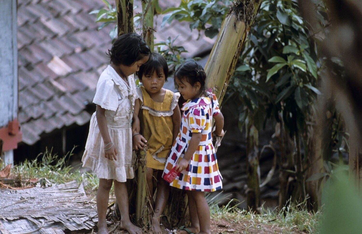 Een onderonsje van drie meisjes, Bandung, West-Java.