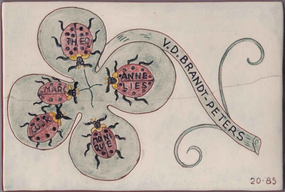Tegel in sgraffito-techniek, met voorstelling: bloem...