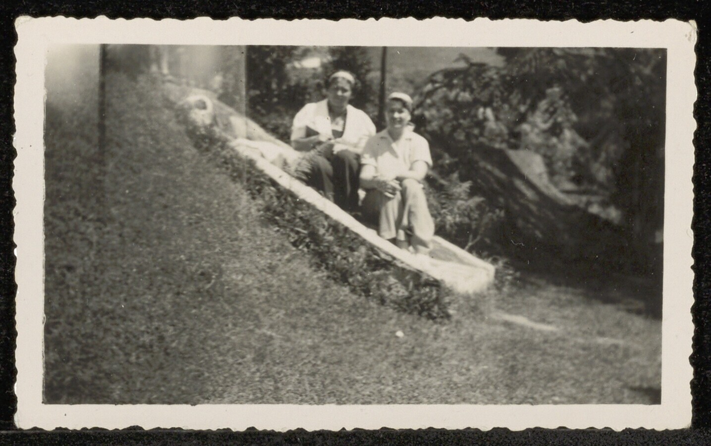 Twee vrouwen poseren op een trap