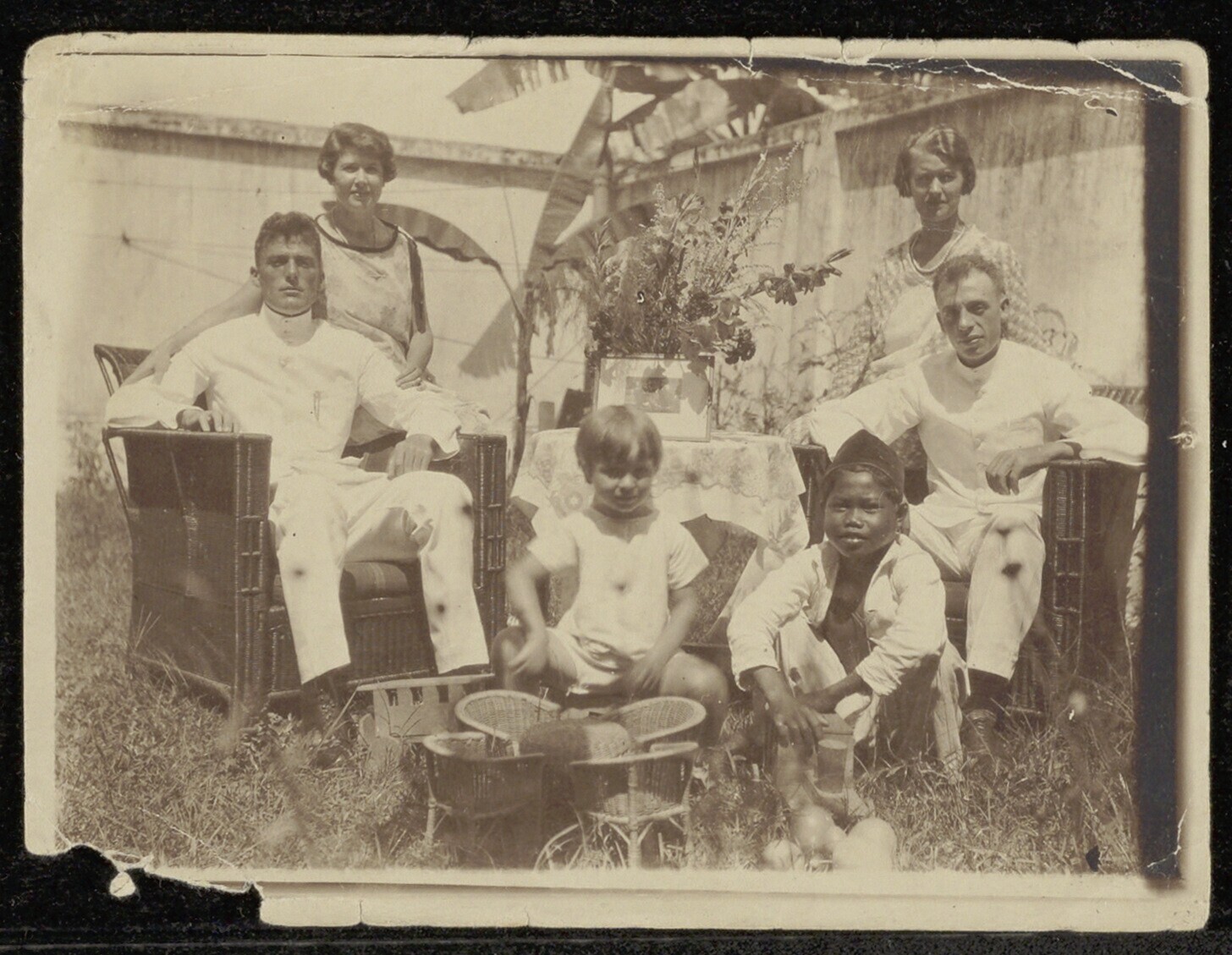 Gezelschap poseert in tuin