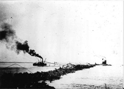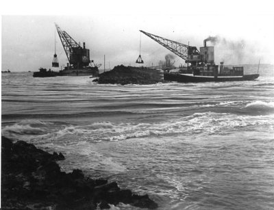 Drijvende kranen en onderlossers bij een sluitgat va...