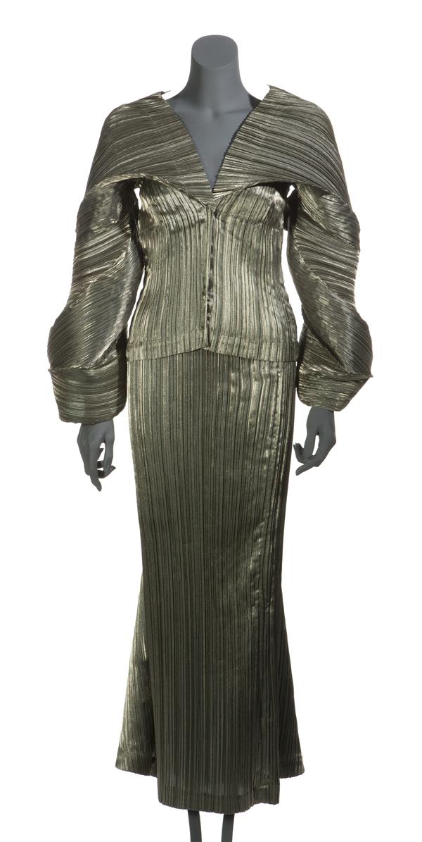Ensemble van bronskleurige, glanzende geplisseerde s...