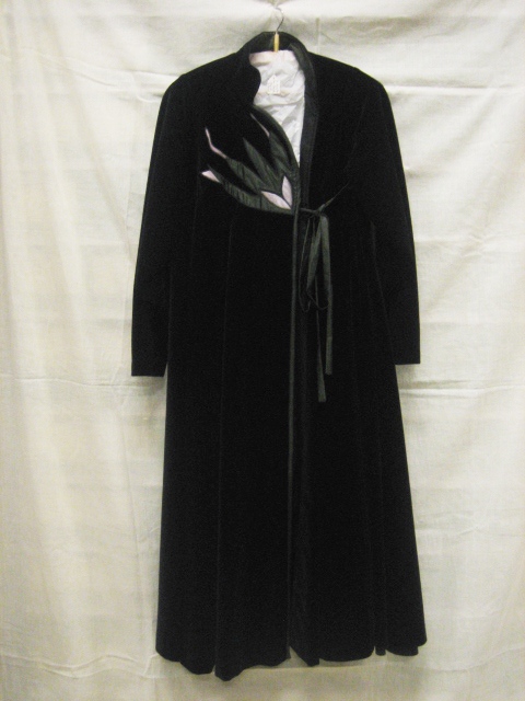 Mantel van zwart fluweel, lang model met verhoogde t...
