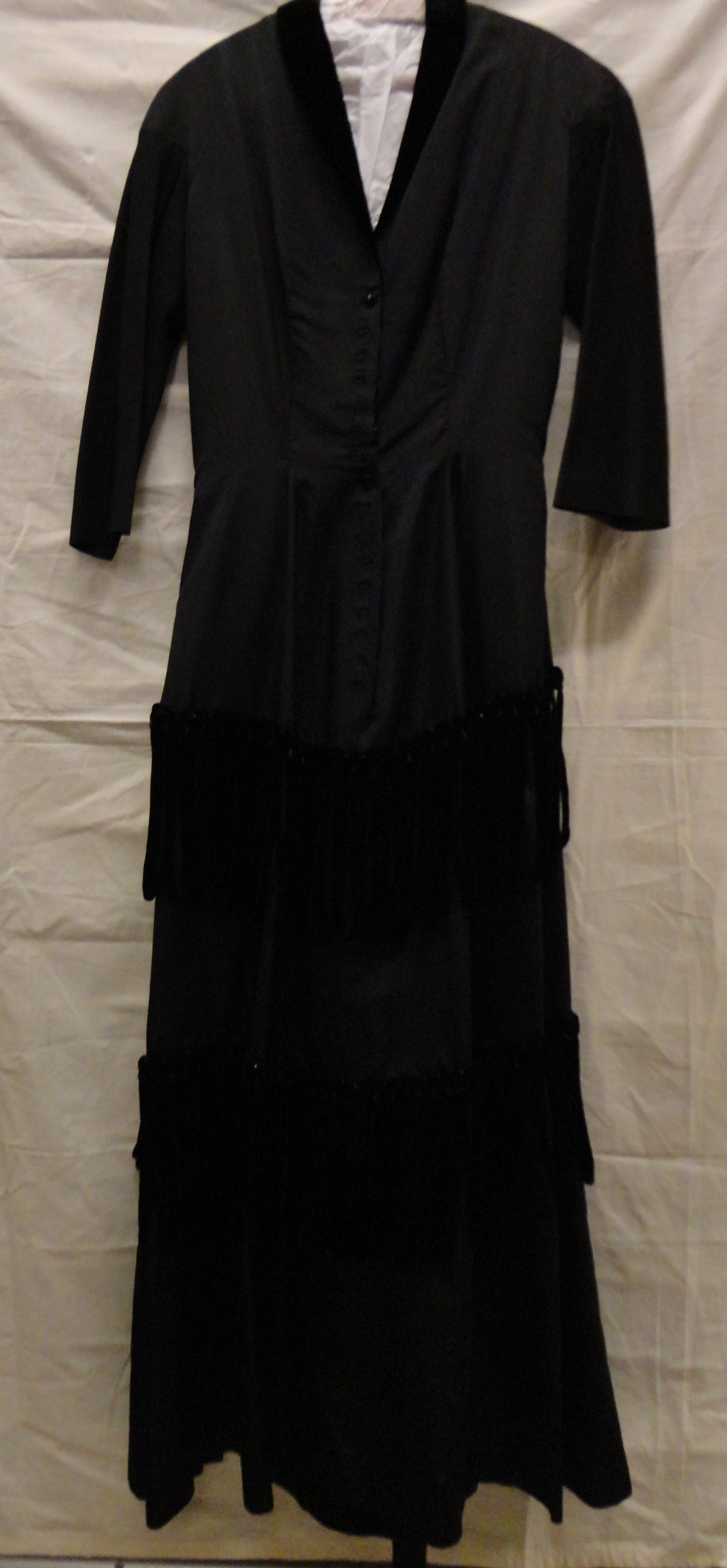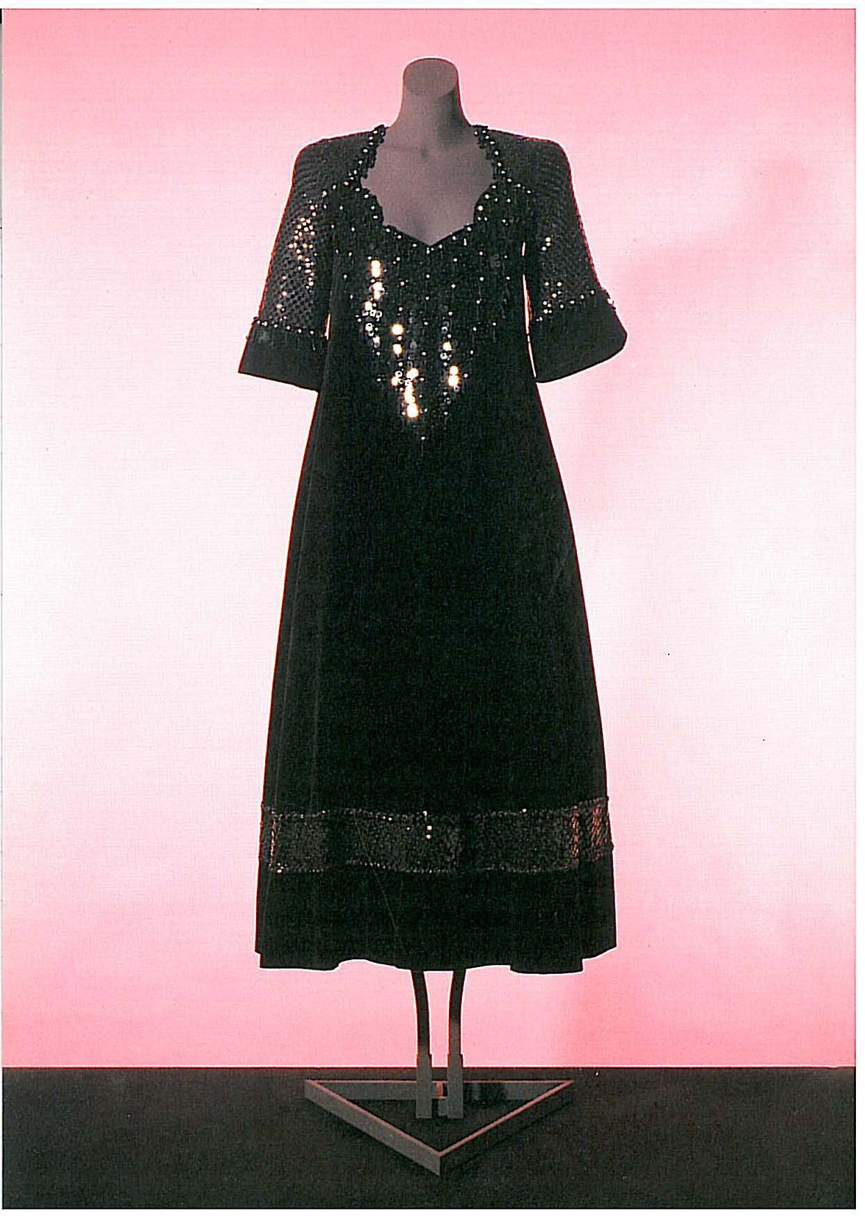 Avondjurk, lang model van zwart fluweel, langs de mo...