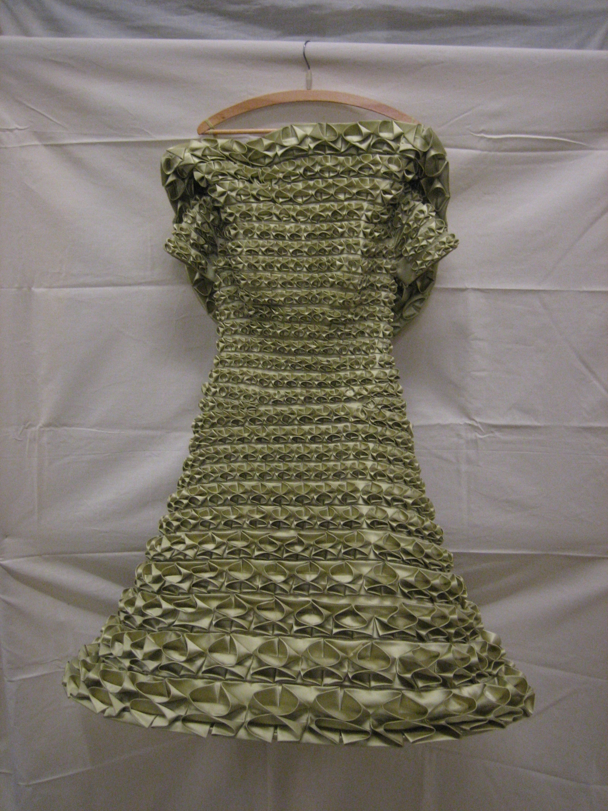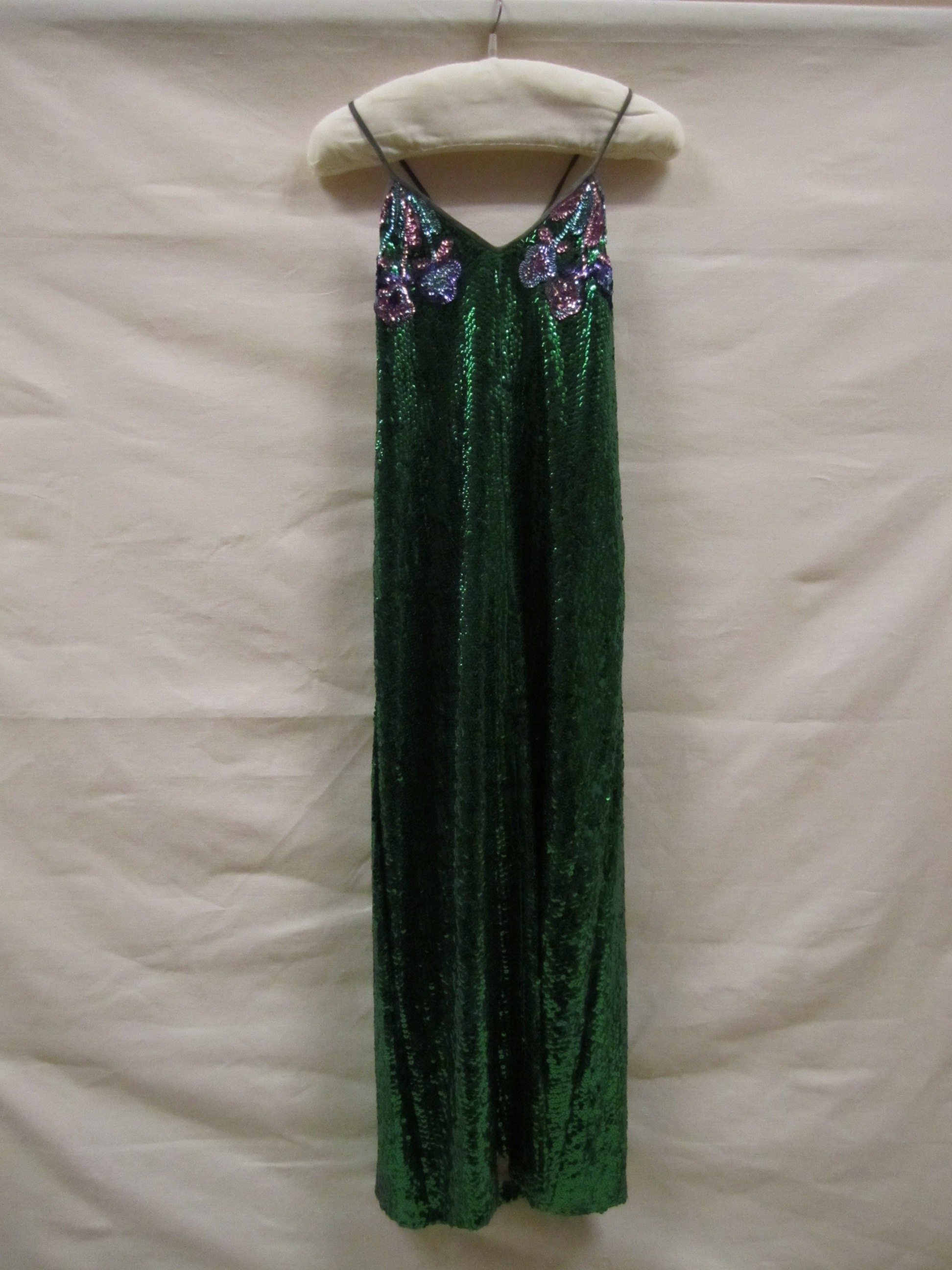 Avondjurk van groene zijde, volledig bestikt met gro...