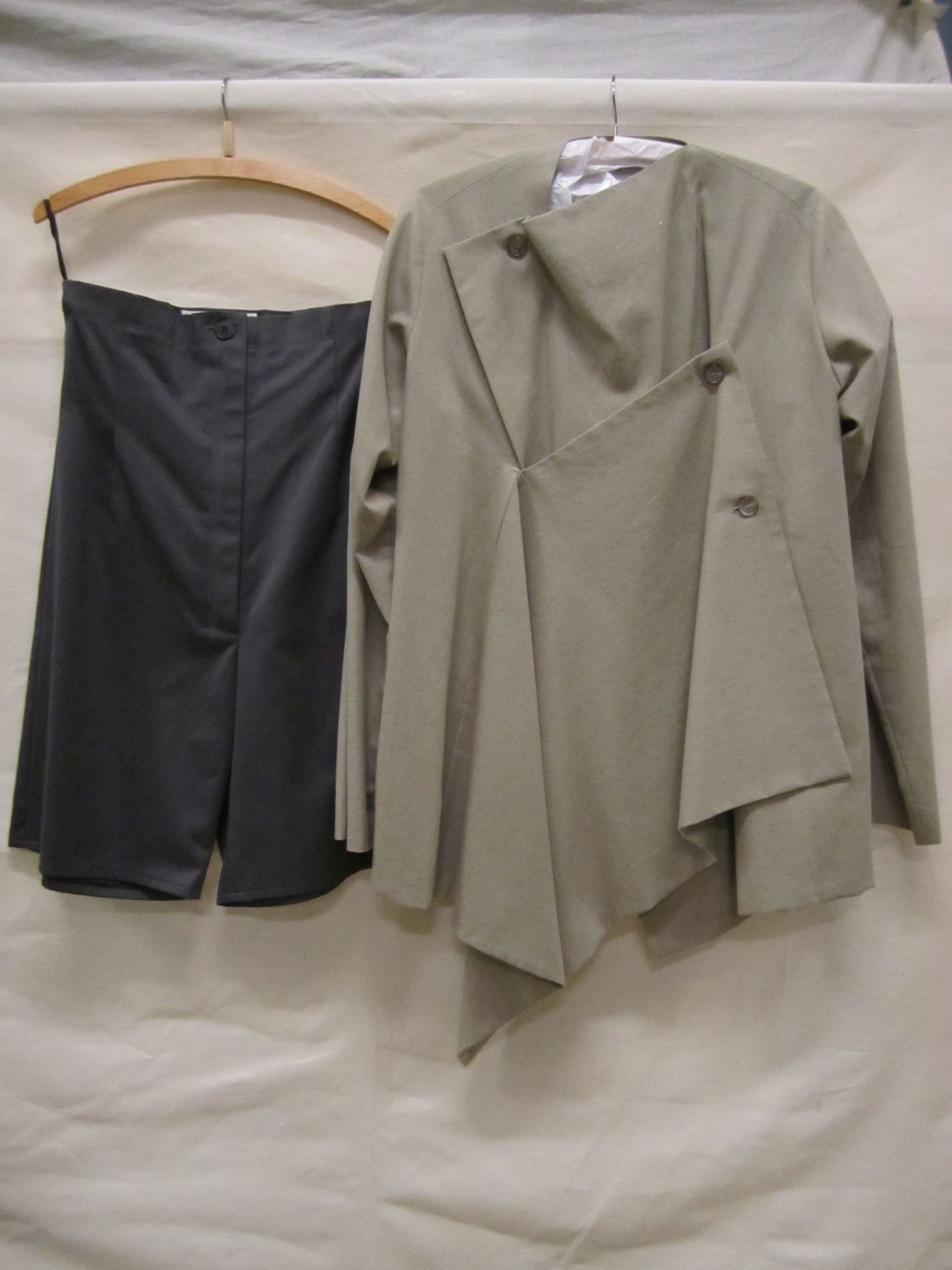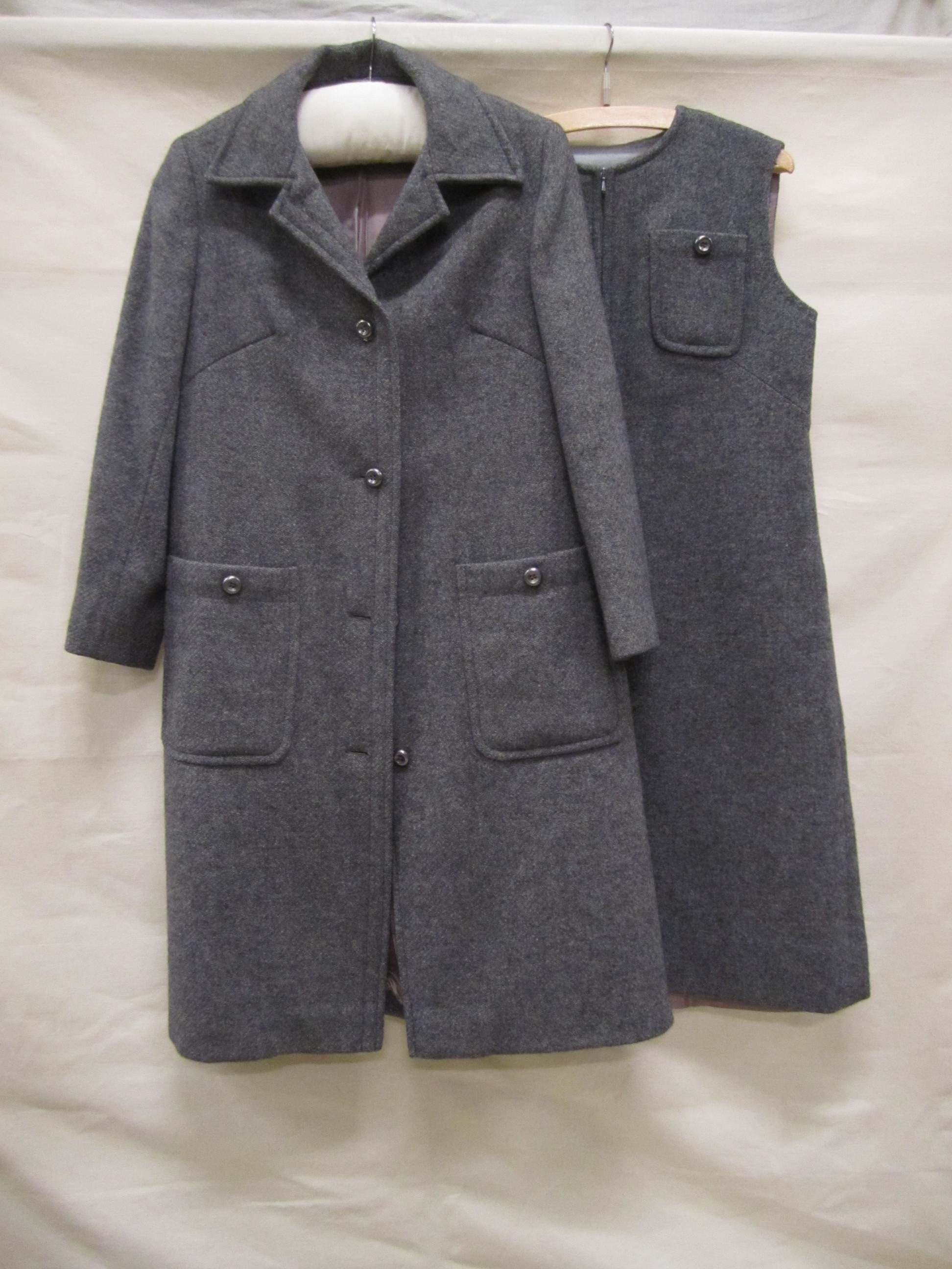 Ensemble van donkergrijze wol bestaande uit een mouw...