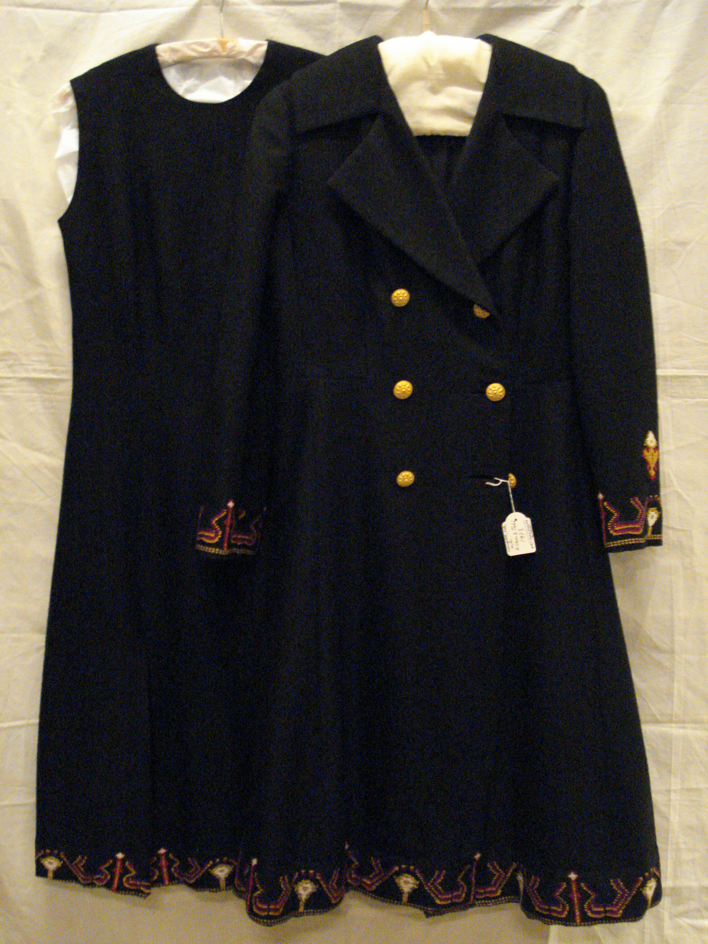 Ensemble bestaande uit een kort jasje van zwarte wol...