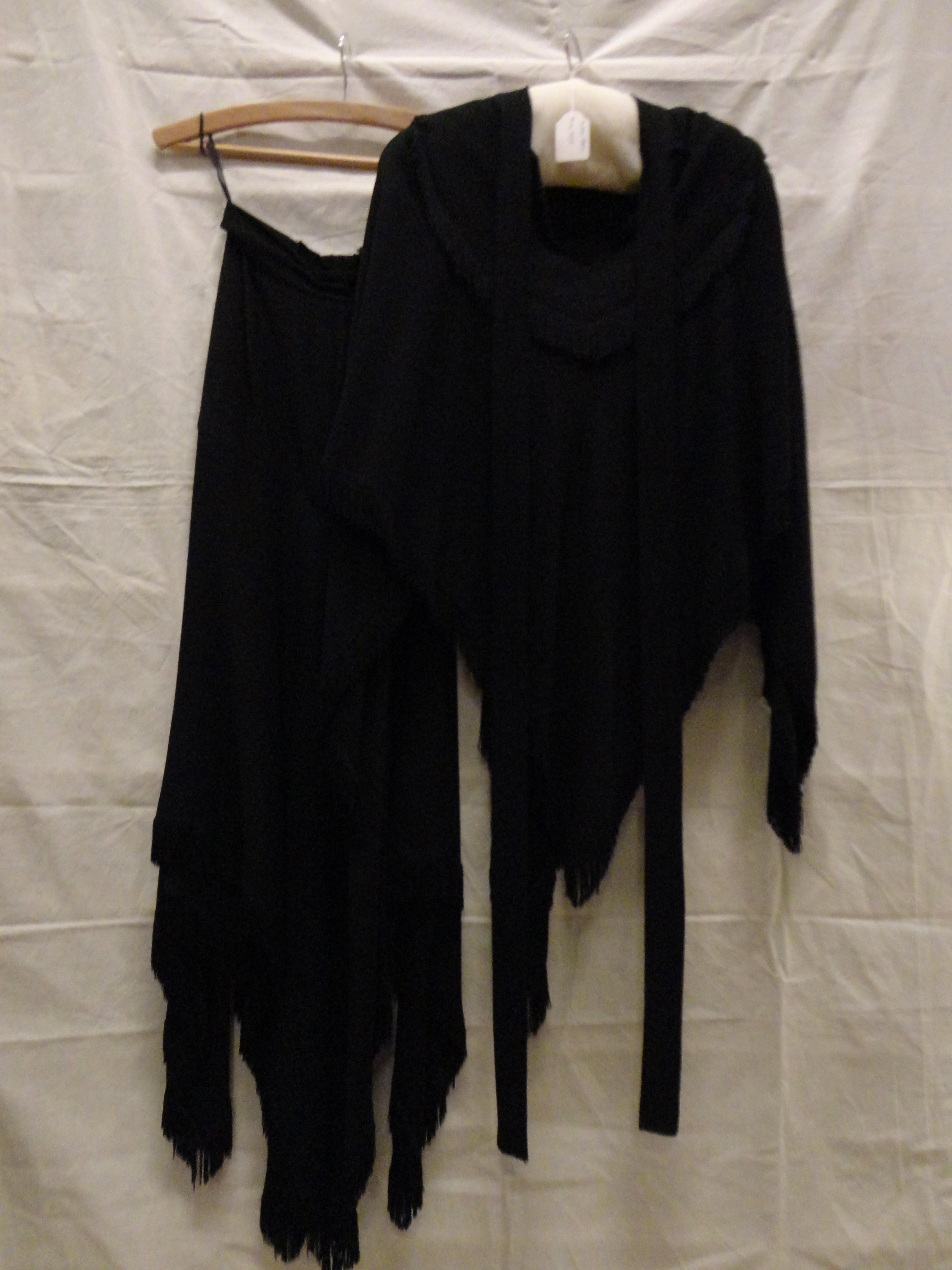 Ensemble van zwarte crêpe bestaande uit een poncho e...