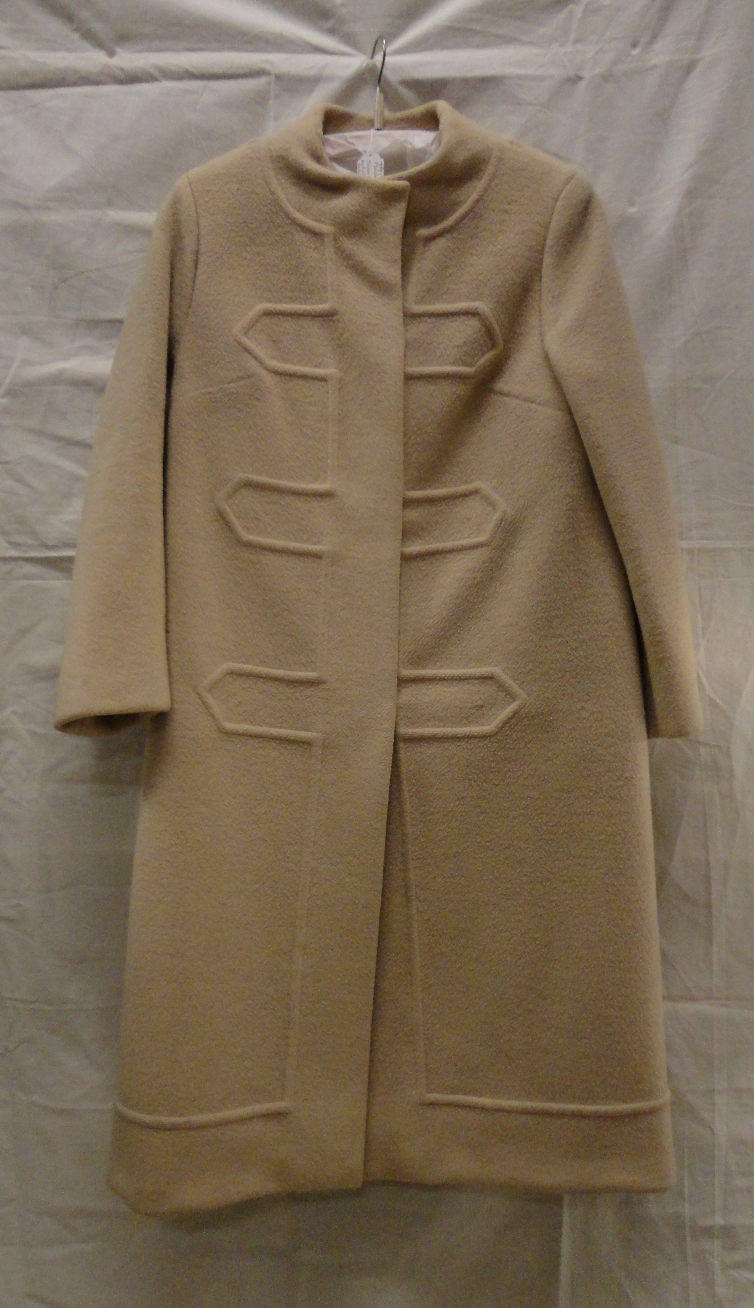 Mantel van beige wol met lange mouwen en ronde hals....