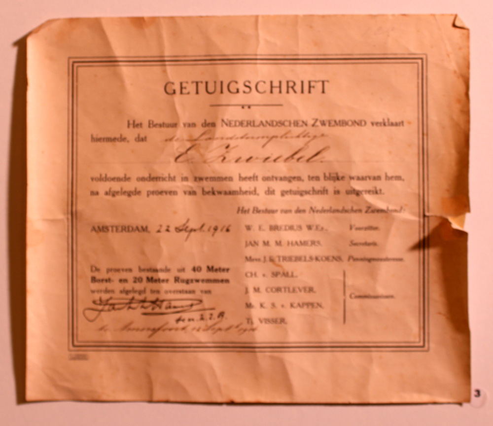 Getuigschrift Zwembond, Amsterdam 1916