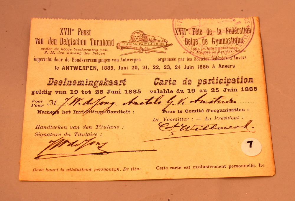 Deelnemerskaart 18e feest van de Belgische Turnbond,...